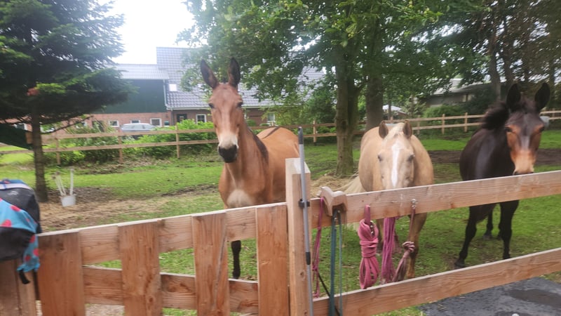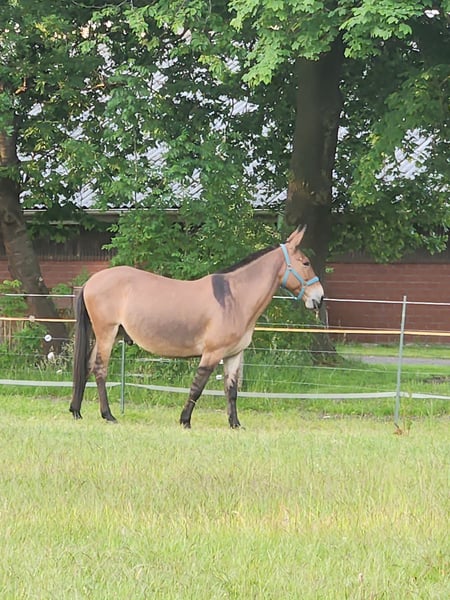A Mule with a Big Heart Is Looking for His Forever Home 💕💕 Bonschi, soon 14 years old, approximately 15.2 hh 💕💕 🩷🩷 Bonschi is an absolute cuddle bug. He is very tolerant of being touched everywhere, loves closeness, and truly enjoys shared moments. He is present, clear-minded, and attentive — a horse you don’t have "on the side," but one you experience consciously. Those who get to know him quickly realize: he has a lot of heart and a strong personality. 🩷🩷 He will soon turn 14, is very clear, unspoiled, and motivated. He was ridden later in life and performed very well. He brings strength, a commanding presence, and a desire to be taken seriously. He wants to be part of the conversation, understood, and to work on equal footing — not just blindly performing but truly engaging in partnership. ☝️ In his social structure, he is confident: he gets along very well with my gelding and higher-ranking horses. With very small or subordinate animals, he may chase or show some stallion-like behavior — this should be considered in his new home. 👉 I have mostly worked with him from the ground so far. It’s clear how much he appreciates having space. He doesn’t like to be pushed, but in groundwork, he can relax wonderfully and work with you. He wants to do something, learn, and above all, build a genuine connection with “his” person. 👉 He leads effortlessly and trusts his handler completely. 💕 He was intended as a life partner for my mule mare. But sometimes, things just don’t work out as planned. 💕💕 This mule has too much heart for a half-hearted home. 💕💕 He’s not looking for just a “place,” but for a 6-star-plus home with someone who has time, feeling, and the desire to continue his training. Only in an outdoor turnout. Priority goes to the well-being of the horse — only in the best, horse- or mule-experienced hands. An overnight stay here can be arranged, and I know reliable transport companies that can bring him calmly and stress-free to his new home. He stands very calmly in the trailer and travels without issues.