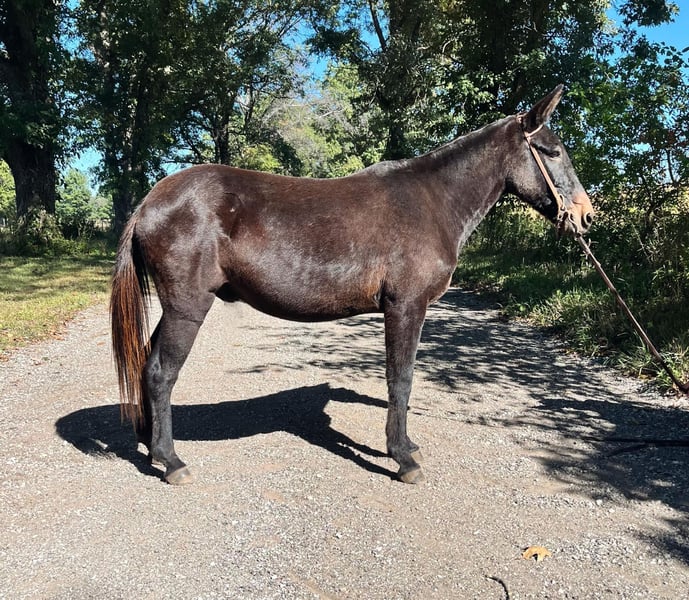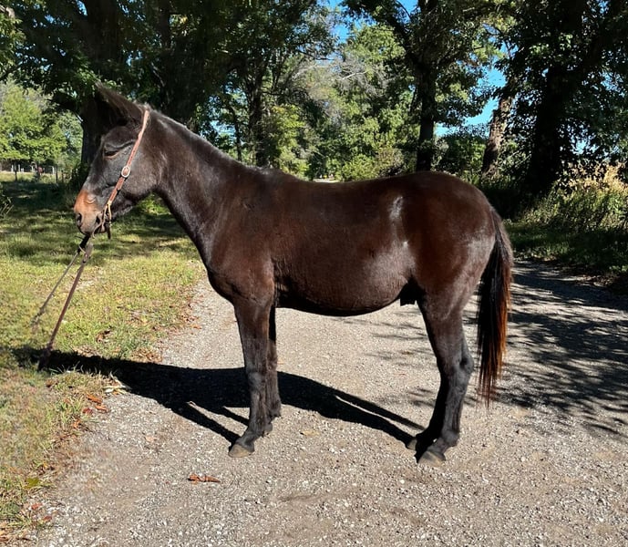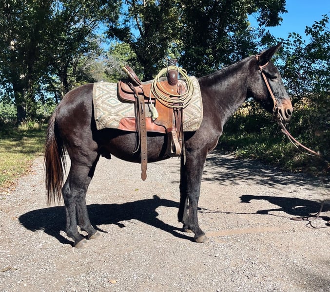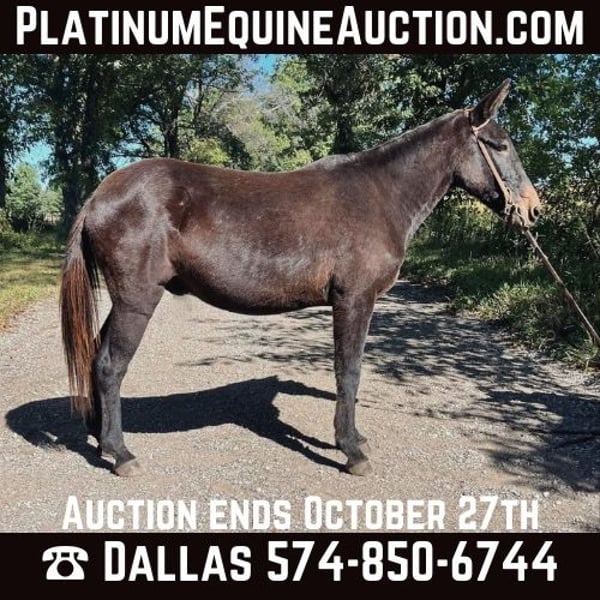 ONLINE AUCTION Place your bids at www.PlatinumEquineAuction.com Starting Bid $3500 Auction ends October 27th, 2024 Need a new saddle? Check out White Rock Saddles on our website or Facebook! No Fuss Gus may be the best mule I’ve ever encountered! This gentle John stands 13 hands tall and is 14 years old. My kids love this guy and he has always been extremely kind and careful them. His good manners extend to every aspect of his handle as well. This mule saddles, leads, ties, and ties the very best. He is also extremely good at handling his ears and feet. We have mainly hauled him around for my nine year old son to trail ride, but my six year old and three year old kids have also rode him by themselves with no issues. We have also used him for pony rides at birthday parties and he loves all the attention from the kids! He is truly a one of a kind mule that be a great addition for any smaller rider or someone who has need of a gentle mount for their children or young relatives! Gus sells %100 sound in every way and is up to date on everything! Located in North Judson, IN. For more information call Dallas Schleg 574-850-6744. ONLINE AUCTION Place your bids at www.PlatinumEquineAuction.com Starting Bid $3500 Auction ends October 27th, 2024 Need a new saddle? Check out White Rock Saddles on our website or Facebook!