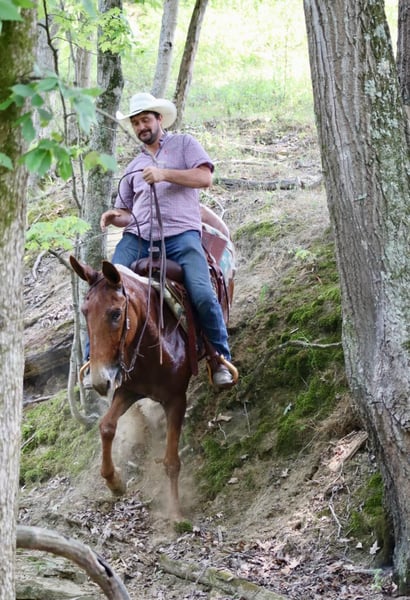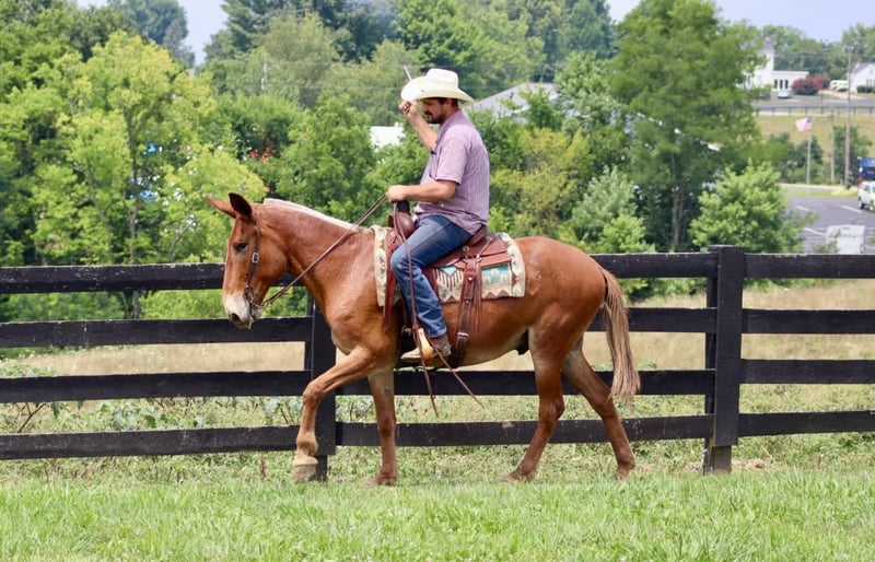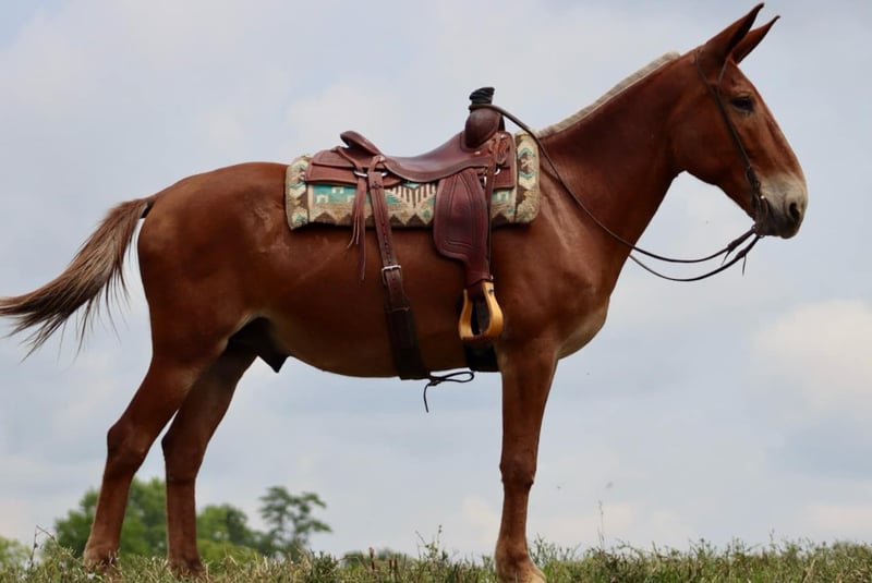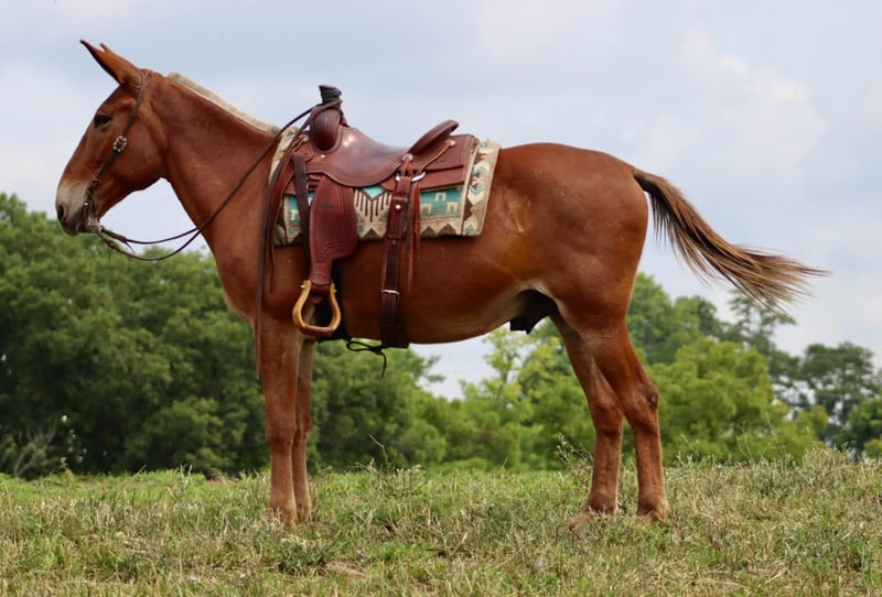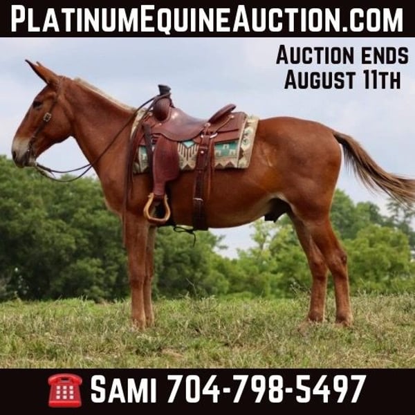 ONLINE AUCTION Place your bids at www.PlatinumEquineAuction.com Starting Bid $3500 Auction ends August 11th, 2024 Need a new saddle? Check out White Rock Saddles on our website or Facebook! Leo is a 15.1 hand, 14 year old John mule. Leo is a get on and go do kind of mule. He is excellent on the trails. There isn’t a bank to steep for him to go down. He nicely steps over logs and through ditches. He is very careful on more technical trails. He is careful with his foot placement and very sure footed. He rides through cattle quietly and comfortably. Leo has a very nice rocking chair kind of lope. He rides one handed. He handles ponying other horses/or mules with ease. He has a nice ground covering walk to get you down the trail comfortably. He is traffic safe and doesn’t mind riding around farm equipment as well. He is comfortable with gunfire around him and we have shot off of him multiple times with ease. He would make an excellent hunting mule as he is confident to ride where you ask, no matter the terrain. He ties out on the high line and has been on camping trips many times before. He rides out alone or in a big group. Leo is the type of mule you can really enjoy whether you need to get work done or just go out for a relaxing ride. Don’t miss out on a big,safe, and fun mule! For more information, please call Sammi Waugh 704-798-5497 Located in Brooksville, KY. ONLINE AUCTION Place your bids at www.PlatinumEquineAuction.com Starting Bid $3500 Auction ends August 11th, 2024 Need a new saddle? Check out White Rock Saddles on our website or Facebook!