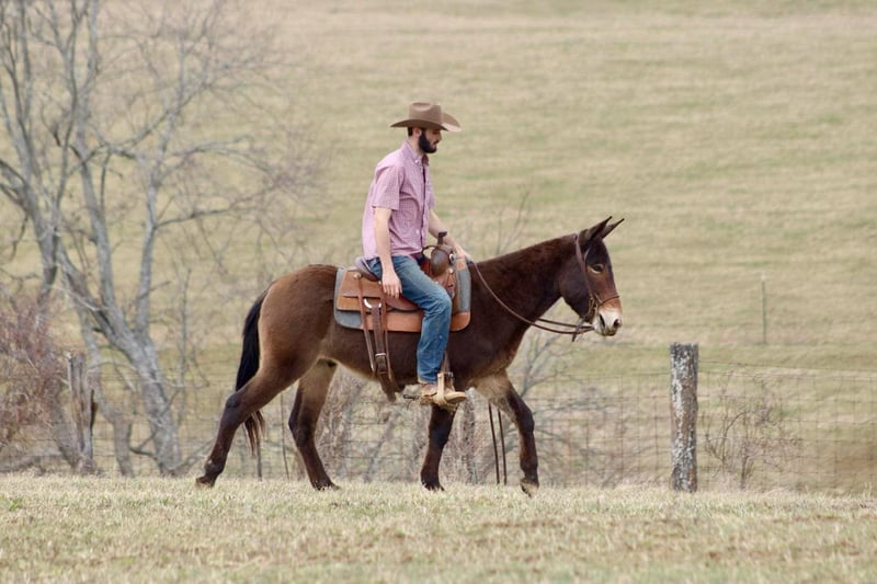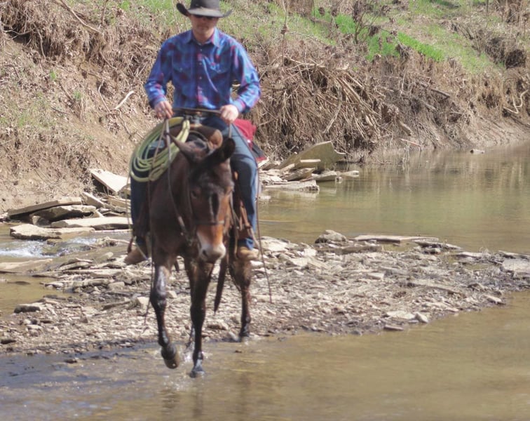 ONLINE AUCTION Place your bids at www.PlatinumEquineAuction.com Starting Bid $3500 Auction ends April 13th, 2025 Need a new saddle? Check out White Rock Saddles on our website or Facebook! Gus is a 5 year old, 14.2 hand John mule. He is a quiet, safe, gentle, and friendly mule. He’s been trail ridden throughout his life and that is where he shines. He is a mountain goat type, if you point his nose, he will go. He is not a spooky type of mule that is looking for boogers to jump at. He rides anywhere in the group. His confidence is growing as the lead mule and he does well in that spot, but he also follows along really well too. Most of his riding has been by a weekend warrior type person that likes to relax on the weekends by riding and drinking beer, so following has been his forte. But with that being said, everyday he is getting better about leading and being more confident out alone. Gus crosses bridges, steps over logs, crosses rivers, slides down steeper banks, and climbs back up the other side. He rides down the trail or road nicely in a loose rein. He has a phenomenal lope that is very comfortable. Gus rides softly. He occasionally has a young mule moment about turning or going somewhere “off the path” but just a little encouragement and he does what he is supposed to do. Every week those little things happen less and less as he continues to get better with each ride. Gus stands to saddle and mount. We’ve thrown a rope off of him. He has ridden through the cows. He trailers well and gets along with others in the group setting turned out. He also has nice stall manners. He is a solid young mule ready for the spring and summer rides! For more information, please call or text Sammi Waugh 704-798-5497 Located in Brooksville, KY. ONLINE AUCTION Place your bids at www.PlatinumEquineAuction.com Starting Bid $3500 Auction ends April 13th, 2025 Need a new saddle? Check out White Rock Saddles on our website or Facebook!
