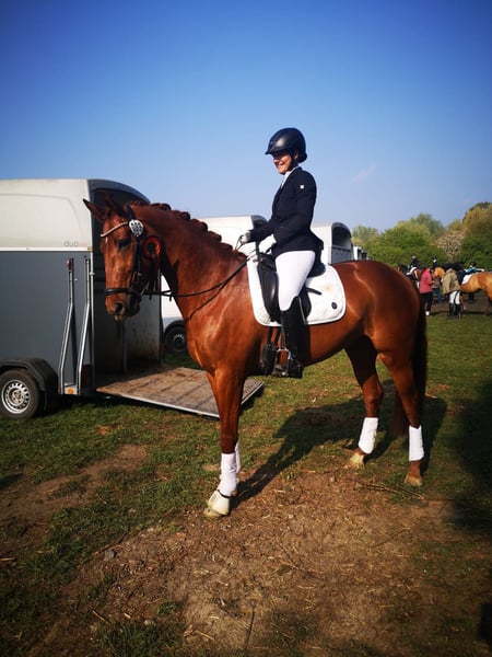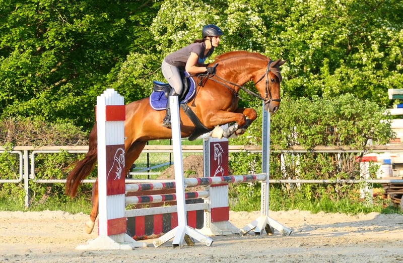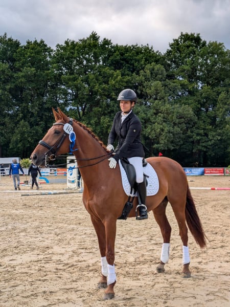 Zum Verkauf steht Balvenie, eine 10-Jährige Fuchsstute. Balvenie ist bis M-Dressur auf Kandare platziert. Sie hat viel Potential für die schwere Klasse. Die Lektionen der Klasse S wurden bereits begonnen mit Serienwechsel bis hinzu 2er-Wechseln (noch nicht immer sicher). Besonders hervorzuheben ist ihr schwungvoller Trab mit ausgeprägter Veranlagung für Piaffe und Passage. Auch im Springen überzeugt sie mit Platzierung bis Klasse A. Hier wurde sie jedoch nicht weiter gefördert. Außerdem geht Balvenie zuverlässig ins Gelände, sowohl alleine als auch in der Gruppe. Auch bei jüngeren oder weniger erfahrenen Reitern zeigt sie sich fehlerverzeihend und lieb. Balvenie wurde als Fohlen prämiert und ist daher auch für die Zucht interessant. Im täglichen Umgang ist sie absolut unkompliziert: Schmiedefromm, verladefromm, brav beim Tierarzt und insgesamt sehr lieb im Handling. Bei uns ist sie verträglich mit Stuten und Wallachen. Keine Unarten wie Koppen oder Weben bekannt. Balvenie ist eine ehrliche, gut ausgebildete Stute mit Perspektive für den ambitionierten Dressurreiter. Züchter-TÜV aus 2025 liegt vor. Video folgt! Bei ernsthaftem Interesse, kann Balvenie gerne nach Terminabsprache zur Probe geritten werden. Mobil: 0173/4619382 (Mo-Fr. ab 15 Uhr, Wochenende ganztätig)