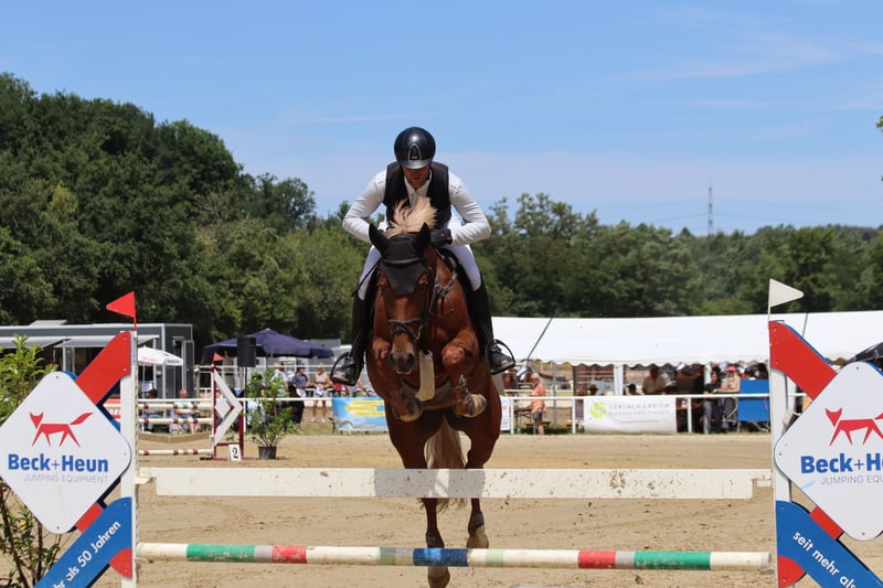 Sehr unkomplizierte, leichtrittige Stute mit schöner Manier und viel Übersicht. Sie ist M-Springen platziert, immer motiviert und möchte gefallen. Sie wurde zunächst als Zuchtstute eingesetzt und danach problemlos von einem Kind geritten, damit ist sie ideal für Junioren oder Amateure. Sie ist brav im Umgang, schön zu reiten und zuverlässig im Parcours. Ein richtiges Mädchenpferd!