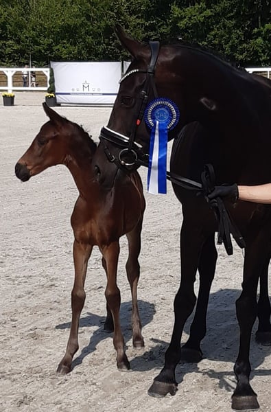 Zoraya is a stunning black-brown mare. She has an excellent dressage pedigree (Zackham/Fürstenball/Rhodium). Her mother is a state premium mare, completed her ELP with a score of 7.89, and has been successful up to L-level dressage. Zoraya herself was placed at the state elite foal championship and was rated with a score of 9.0 for type and 8.5 for both conformation and movement. Contact: Annekatrin Kabbe Mobile: 0162 4580605