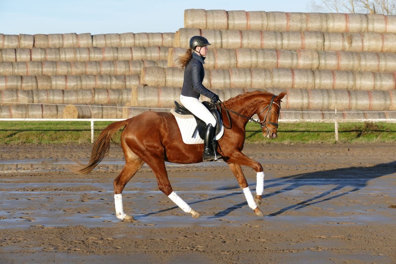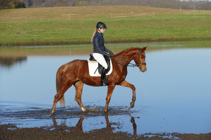 Mira: - Characterful Mecklenburg mare in a smaller build - With three fundamentally good gaits - Light in the hand and easy to sit - With a genuinely honest character - Mira was born, raised, and gently trained at Ganschow Stud