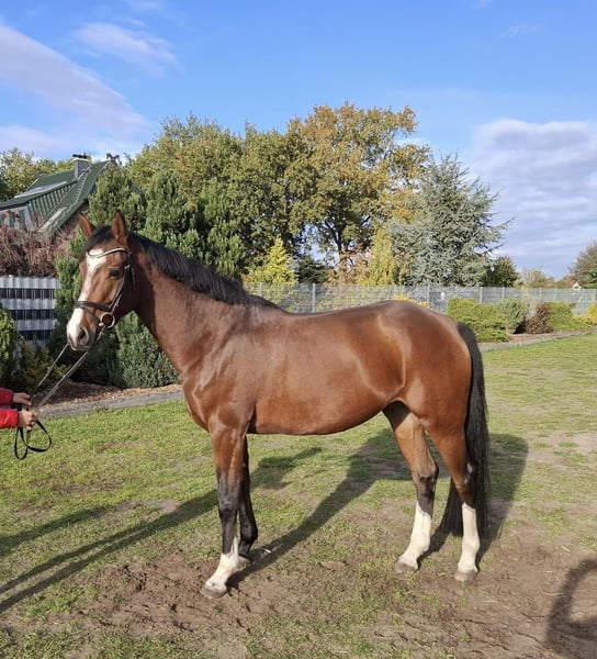 Cash for Fly is a very attractive mare with three above-average gaits. She is very gentle to ride and always strives to please her rider and do everything correctly. She is very straightforward over fences, demonstrating plenty of scope and caution. She moves softly on the bit and responds delicately to aids. She would suit riders in all disciplines and could also be a wonderful mother/daughter horse. Despite her young age, she is very calm and affectionate. She shows great potential as a hunter, making her especially interesting for the USA! Farrier- and loading-friendly. Directly from the breeder. No health certificate available yet!