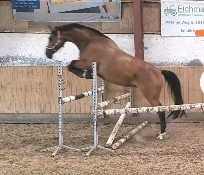 Wir haben eine tolle Stute mit ganz besonderem Charakter - brav, entspannt, motiviert und immer leistungsbereit. Sehr schonend ausgebildet und aufgezogen. Offenstallhaltung 24/7 bis zum 5.Lebensjahr. Absolut leichtrittig und wirklich talentiert am Sprung. Die Stute ist deshalb auch für talentierte Nachwuchsreiter geeignet, die ein Pferd suchen, das parcoursfertig mit ihnen wachsen kann. Im Gelände und am Sprung absolut zuverlässig und mutig. Darum bietet sich das Pferd auch für die Vielseitigkeit an. Denkbar ist zunächst auch eine 100%ige Überlassung zur Nutzung des Pferdes mit späterer Kaufoption.