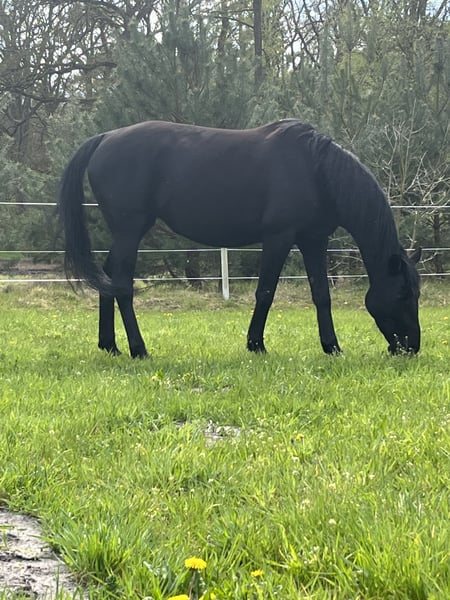 Rappstute 28.04.2017 zu verkaufen. Stockmass 1,58. Aus gesundheitlichen Gründen habe ich mich entschlossen meine Stute in gute Hände zu verkaufen. Sie steht im Offenstall und das würde ich mir auch zukünftig für sie wünschen da sie in der Box unglücklich ist. Sie bewegt sich eigentlich immer und braucht dies auch. Sie ist freizeitmässig eingeritten und geht gerne ins Gelände und dies auch alleine. Allerdings ist sie sehr schreckhaft und braucht daher einen sattelfesten Reiter. Die letzten 2 Jahre wurde sie nur in Boden- und Freiarbeit beschäftigt. Dies reicht ihr auf Dauer nicht. Deswegen ist der Rücken auch momentan nicht ausreichend bemuskelt. Wenn sie Vertrauen aufgebaut hat, ist sie ein starker Partner. In der Herde ist sie ranghoch. Sie läuft barhuf und ist beim ausschneiden im hufschmiedtermin sehr lieb. Fragen gerne per Nachricht an mich.