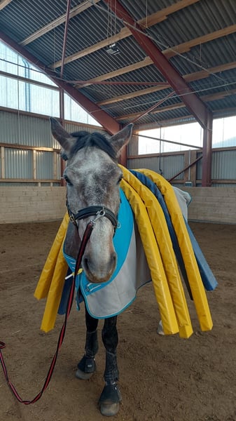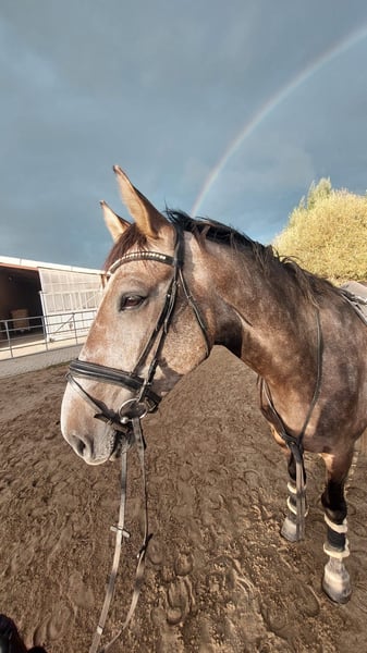 Potenziale cavallo da volteggio in vendita, ma ha bisogno di tempo per svilupparsi completamente a causa della sua grandezza. Il cavallo ha una solida base e offre potenziale per ulteriore sviluppo. Abbiamo acquistato Silas un anno fa per il nostro gruppo M, ma abbiamo constatato che ha ancora bisogno di molto tempo prima di poter sostenere il nostro gruppo. Poiché al momento non abbiamo un altro gruppo o un cavaliere adatto per lui, cerchiamo una casa amorevole e stimolante, dove possa continuare a crescere e svilupparsi. Conosce già il galoppo in salto e la routine in passo. A livello di equitazione è piuttosto al livello di un 4enne e ha quindi bisogno di un cavaliere esperto e sensibile. Si diverte anche molto con il lavoro a terra, il doppio longher e il lavoro con i bastoni. Dal precedente proprietario è stato saltato, ma da noi non lo è stato nell'ultimo anno. È compatibile con altri cavalli, si comporta bene dal maniscalco e attualmente va scalzo. Attualmente sta in box di notte e durante il giorno è in branco al pascolo. Tuttavia, ci immaginiamo bene anche in un paddock o in un box attivo. Sono disponibili radiografie molto buone risalenti ad agosto 2024, che possono essere inviate su richiesta.