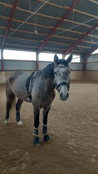 Potentielles Voltigierpferd zu verkaufen, benötigt aber aufgrund seiner Größe noch Zeit, um sich vollständig zu entwickeln. Das Pferd bringt eine solide Grundlage mit und bietet Potenzial für die weitere Förderung. Wir haben Silas vor einem Jahr für unsere M-Gruppe gekauft, haben allerdings festgestellt, dass er noch sehr viel Zeit braucht, bis er unsere Gruppe tragen könnte. Da wir aber gerade keine andere passende Gruppe/Einzel für ihn haben, suchen wir ein liebevolles, förderndes Zuhause, in dem er weiter wachsen und sich entwickeln darf. Einzel Pflicht, Aufsprung im Galopp und Kür im Schritt kennt er schon. Reiterlich ist er eher auf dem Stand von einem 4-jährigen und braucht somit einen erfahrenen und einfühlsamen Reiter. Er hat auch viel Spaß an Bodenarbeit, Doppellonge und Stangenarbeit. Beim Vorbesitzer wurde er auch gesprungen, bei uns im letzten Jahr allerdings nicht. Er ist verträglich mit anderen Pferden, brav beim Hufschmied, läuft im Moment Barhuf. Aktuell steht er nachts in der Box und tagsüber in der Herde auf der Wiese. Wir könnten uns ihn aber auch sehr gut im Offen- oder Aktivstall vorstellen. Sehr gute Röntgenbilder aus 09/2024 vorhanden, können bei Bedarf gerne verschickt werden.