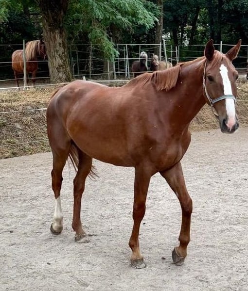 For sale is a Mecklenburg Warmblood gelding by Chacco-Blue out of a Capriol mare, born in 2018. This elegant chestnut impresses not only with his striking height of 181 cm but also with his promising talent in show jumping. He is ideally suited for ambitious riders looking for a reliable partner in the jumping sport. With his friendly nature and high willingness to perform, he is suitable for both leisure and competition riding. The gelding is well-trained and is registered in List I for German riding horses. He demonstrates cooperation and eagerness to learn in all disciplines and is always well-behaved in handling. However, he has a slight tone, which in no way affects his performance.