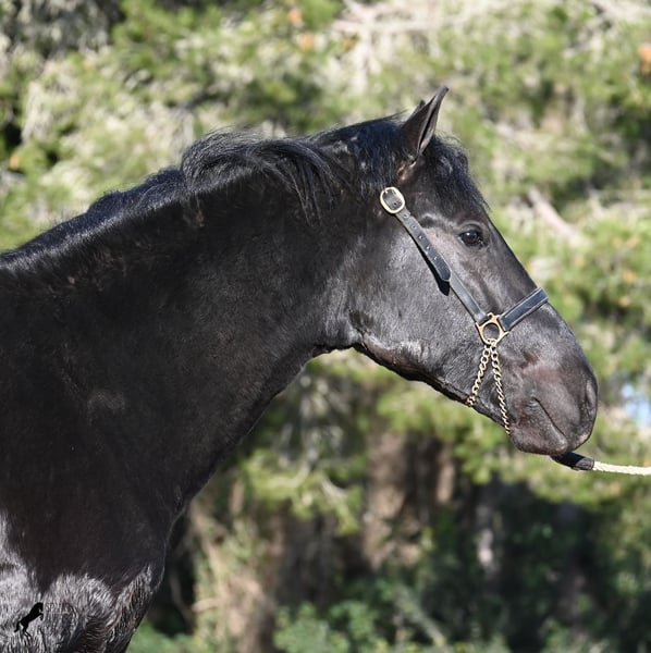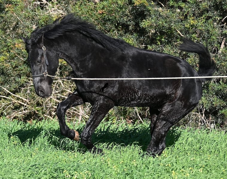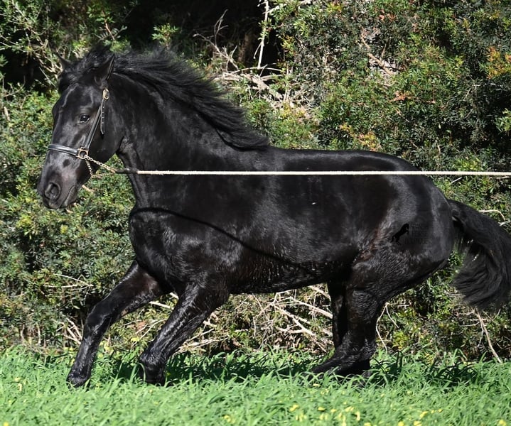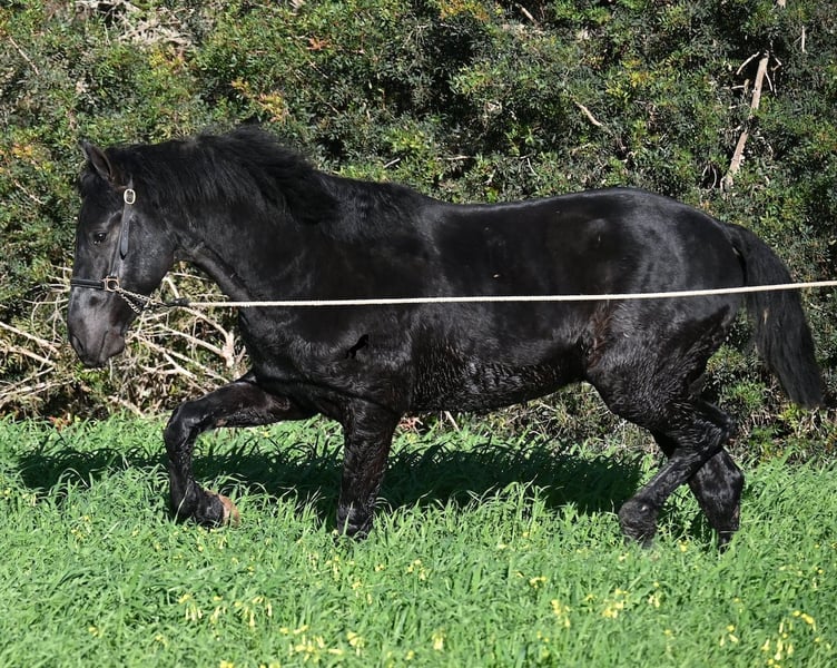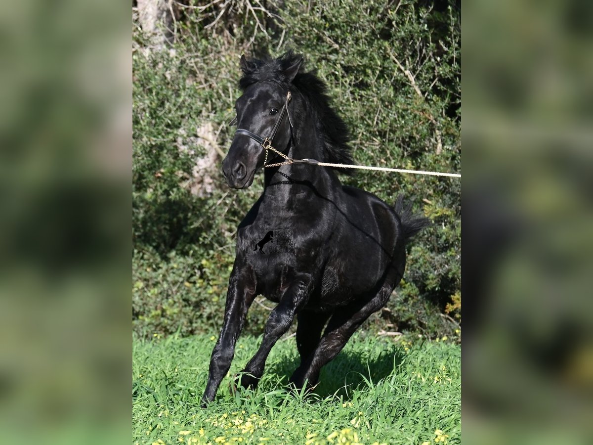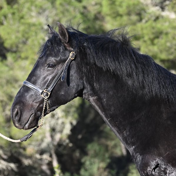 Este semental de Menorquina, nacido a principios de 2024, es un auténtico corazón de caballo. Es increíblemente dócil y tranquilo, un verdadero caballero a pesar de su juventud. En su manejo, no podría ser más obediente, ya sea al limpiar sus cascos, que levanta sin que se le pida, o al pasearlo junto a otros caballos en libertad, caminando tranquilamente a su lado. En el box, permanece muy paciente sin inquietarse y espera tranquilamente a que se le indique qué hacer. En movimiento, muestra sus hermosos aires y su calidad, ya que lleva sangre de campeón, lo cual se nota claramente en él. Tradicionalmente, en Menorca, se le suele rapar la crin en la etapa de potro, pero en su caso, se ha dejado crecer, y se puede ver que cumplirá con la imagen de Black Beauty, ya que tiene una ondulación natural en la crin. Es completamente negro, sin marcas blancas, y vive en un sistema de robusta convivencia 24/7, por lo que está acostumbrado tanto al clima extremo, con temperaturas que alcanzan los 40°C en verano y heladas en invierno, como a pastos abundantes. También conoce y respeta la valla eléctrica. Su tamaño final esperado será alrededor de 1,60 m de altura. En el futuro, será un caballo interesante para muchas disciplinas de doma y también destacará en el tiro, si se le entrena para ello. Para quienes deseen adquirirlo más adelante, existe la opción de reservar un lugar en la finca para su cría. Videos y pedigrí disponibles bajo petición. Su ubicación actual es en Menorca. Con gusto puedo organizar una revisión de potro en la finca, transporte o incluso su viaje si deseas visitarlo en persona. Para más detalles, puedes consultar mi página o contactarme directamente. Saludos desde España