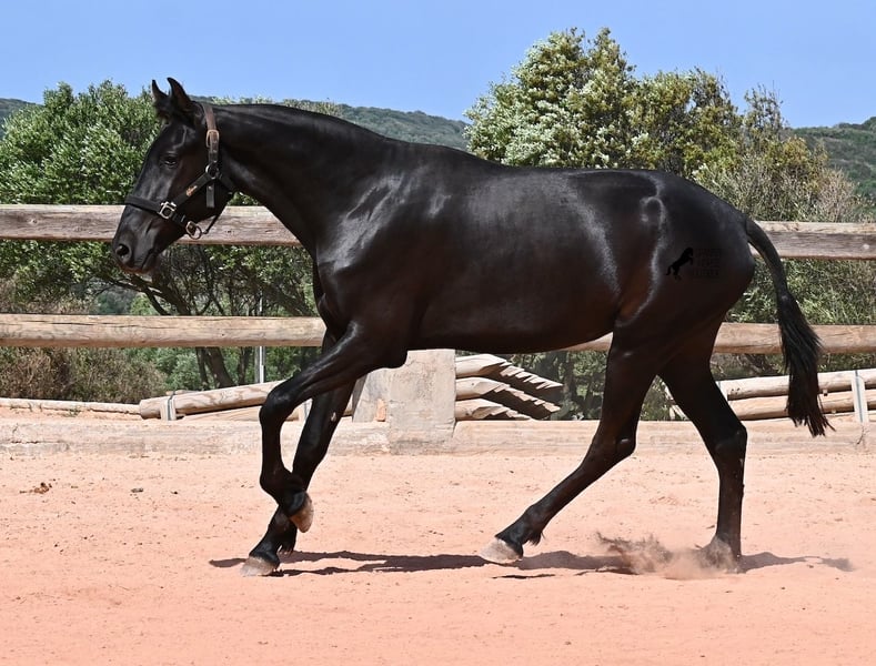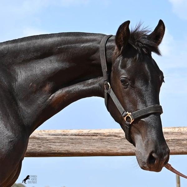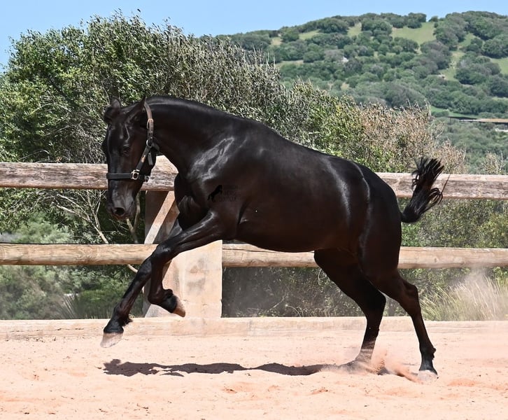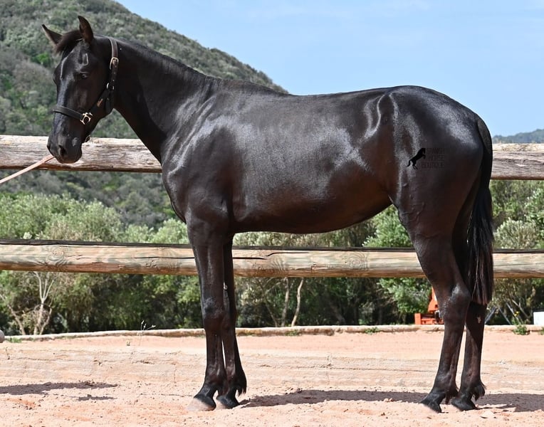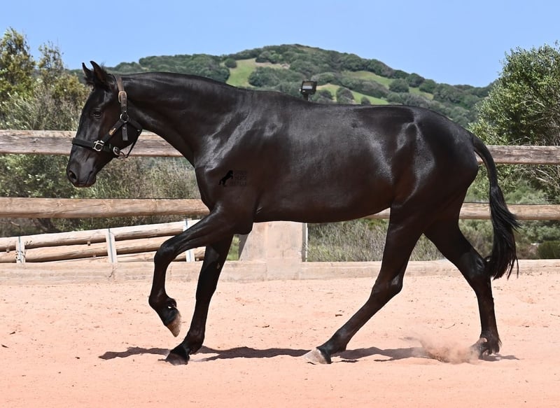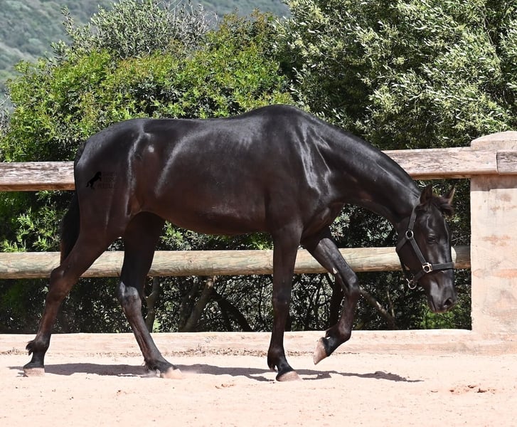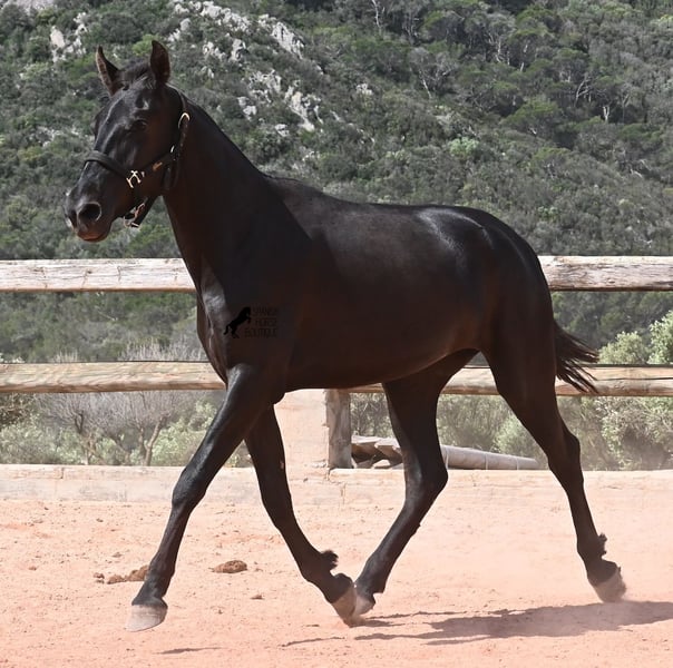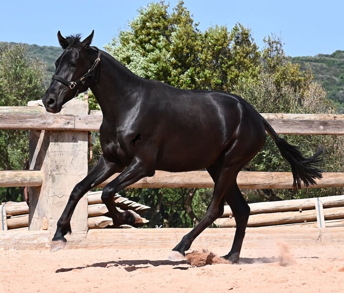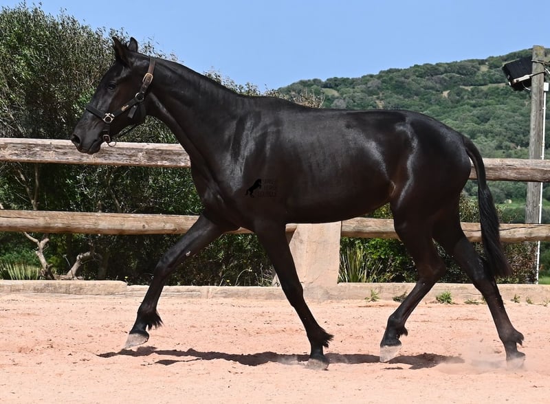 Diese 2024 geborene, reinrassige Menorquinstute, ist in ihrem zarten Alter schon schön harmonisch gebaut. Durch ihre Adern fließt edles Blut, denn ihr Papa war Rassechampion und ist über 170cm groß. Aktuell misst sie schon fast 157cm und da Menorquin absolute Spätentwickler sind, wird auch sie noch einige Zentimeter wachsen. Ihr Gebäude und ihre Bewegungen sind ideal für die Working Equitation, Western und barockes Reiten, wobei ihr natürlich noch alle Sparten später offenstehen. Sie hat einen starken Rücken und was schön zu sehen ist, sie geht alleine vorwärts/abwärts, was in der späteren Arbeit sehr zuvorkommend ist. Ansonsten genießt sie das Fohlenleben in der Herde, steht 24h in Robusthaltung auf harten Böden und marschiert spielend viele Kilometer mit ihren Kumpels über Felsen und Hügel. Somit ist sie robust, hat gute Hufqualität und klare Beine. Es sind keine weißen Abzeichen an ihr zu finden, doch sie hat seit Geburt an eine bräunliche Stelle auf der rechten Halsseite, die auch beim Fellwechsel nicht verschwindet. So ist sie wirklich einzigartig und sticht aus der Herde heraus. Im Umgang ist sie ganz sanft und zart, in der Herde ist sie mittleren Ranges. Eine tolle Nachwuchsstute, im idealen Alter, um langsam spielerisch mit Bodenarbeit anzufangen und eine Freundschaft fürs Leben aufzubauen. Videos und Abstammung gerne auf Anfrage. Ihr Standort ist Menorca. Gerne organisiere ich vor Ort eine AKU, Transport oder auch ihre Reise, sollten Sie persönlich zum Anschauen kommen. Details dazu gerne auf meiner Seite oder im Gespräch.