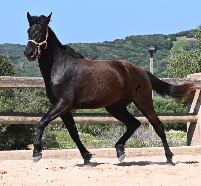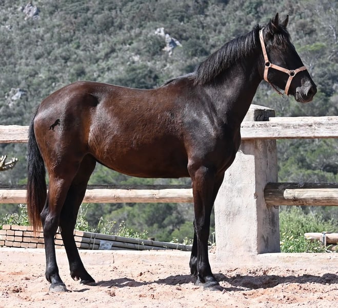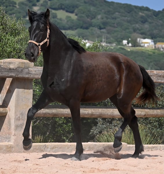 Cette jument pure race menorquine née en 2023 veut définitivement aller loin ! À seulement 2 ans, elle mesure déjà 164 cm et, une fois adulte, elle atteindra sans aucun doute la marque des 170 cm. Avec fierté et joie de vivre, elle s'élance sur la carrière et montre son esprit charmant. Elle se déplace également très bien et avec son caractère et son mouvement, elle sera intéressante non seulement pour les loisirs, mais aussi pour le dressage et l'équitation de travail. Son père est un étalon exceptionnel, car 3 (!) de ses descendants ont été CHAMPIONS DE RACE ! Cette jument a donc de nobles frères et sœurs et est certainement intéressante pour les éleveurs, car elle est également issue par sa mère de BUYO, l'un des pères fondateurs de la race. Elle vit en troupeau en pâturage 24h/24, ce qui lui permet d'être parfaitement socialisée et endurcie, grâce au climat rude de Minorque. Étant donné que de si grandes juments sont très rares chez les menorquins, son segment de prix est en conséquence pour une telle rareté. Elle est actuellement sur Minorque ! Des vidéos et son pedigree sont disponibles sur demande. Je peux également organiser sur place une visite vétérinaire, un débourrage, un transport ou même son voyage si vous souhaitez venir la voir en personne. Pour plus de détails, n'hésitez pas à consulter ma page ou à en discuter. Salutations d'Espagne.