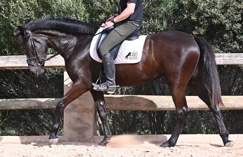 This purebred Menorcan mare, born in 2021, stands at 165cm, making her not only very tall for her age but also possessing a correspondingly big heart! She is an utterly charming, sweet mare, deeply relaxed in the typical Menorcan way, and couldn't be more agreeable. In handling, she is a heart of a horse, and under saddle, she always aims to please her rider. Due to her size, she was given a bit more time to grow, so she was only introduced to the rider in winter 2024 and is now being gently further trained. She is eager and absolutely well-behaved, as if she has been a riding horse for years. Her training level corresponds to that of a young horse, so sometimes she still follows her nose for a few steps, but she is increasingly accepting contact and learning to carry herself more. She goes barefoot without issue, was raised in a herd in robust conditions, and has been stabled since the start of her training. She is approved for breeding but has not yet had any offspring. However, if you wish to breed a foal from her, that option is available. Even though her veins carry the old lines of the Menorcan, where horses were not as tall and more baroque, she is very athletic and will still grow a few more centimeters! There is an option for training in the English style or Horsemanship on-site! She is currently located in Menorca! Videos and pedigree available upon request. I am happy to organize a vet check, training, transport, or even your trip if you wish to visit her personally. Details are available on my page or in conversation. Greetings from Spain