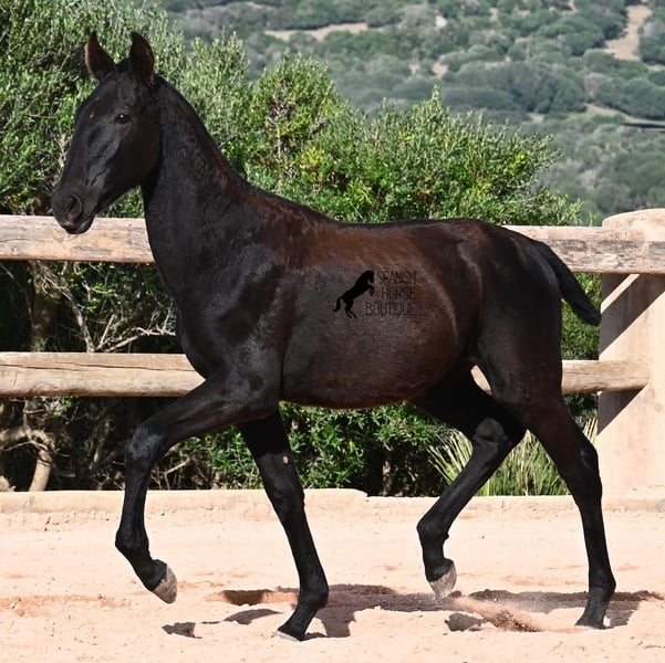 Diese 02/2025 geborene, reinrassige Menorquinstute, hat ein ganz extravagantes Köpfchen, was sie aus der Maße herausstechen lässt. Ihr Papa ist erstaunliche 173cm groß und ein Recomendado Hengst (für die Zucht empfohlen) aufgrund seiner Turnierleistungen. Dieses Potenzial und diese Größe, hat er zweifelsohne an seine Tochter weitergegeben. Ihre langen Beinchen zeigen jetzt schon, dass wird eine große Dame und sie setzt diese Beinchen auch mit viel Schwung, Schub und Eleganz! Das wird sie später für viele Sparten attraktiv machen. Sie hat einen ganz entzückenden Charakter. Sie ist sehr ruhig und offen, wodurch sie später bestimmt zu einer verschmusten Lady wird. Ihren Alltag verbringt sie im Pferdekindergarten, in absoluter Robusthaltung auf felsigen Böden und rauem Klima. Nebst spielen mit den Pferdekumpels, stehen auch regelmäßiges FohlenABC auf dem Programm und sie wird sehr liebevoll betreut. Videos und Abstammung gerne auf Anfrage. Ihr Standort ist Menorca. Gerne organisiere ich vor Ort eine Fohlen-AKU,Transport oder auch ihre Reise, sollten Sie persönlich zum Anschauen kommen. Details dazu gerne auf meiner Seite oder im Gespräch. Saludos aus Spanien