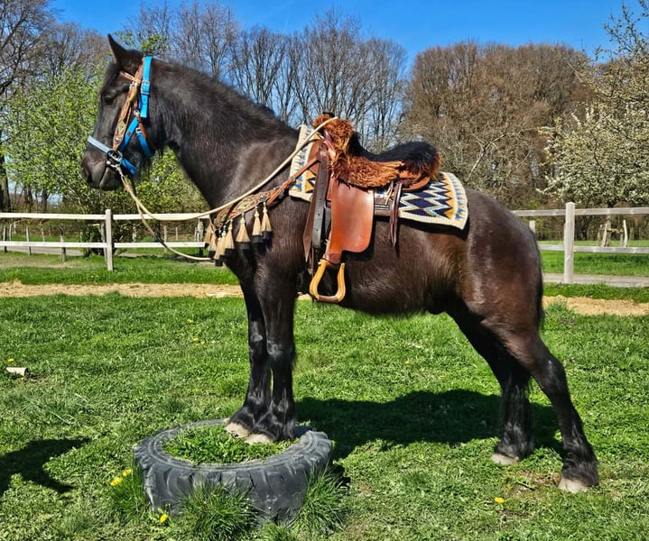Zum Verkauf steht ein junger Merenswallach (geb. 2022) mit viel Charme und einer ansprechenden, dunklen Farbgebung Er bringt einen kräftigen, kompakten Körperbau mit und zeigt sich im täglichen Umgang freundlich, ausgeglichen und sehr menschenbezogen. Unter dem Sattel ist er bereits geritten und präsentiert sich dabei zuverlässig sowie gelassen. Auch im Gelände macht er einen guten Eindruck und bleibt sowohl alleine als auch in der Gruppe ruhig und brav. Seine Haltung in Offenstallhaltung ist ihm vertraut, was er problemlos annimmt. Insgesamt ein vielseitiger junger Wallach mit solider Grundlage und viel Entwicklungspotenzial – ideal für Freizeit und weitere Förderung. Pflege & Betreuung: – Regelmäßig entwurmt – Schmied gepflegt – Osteopathisch betreut Zusatzangebote: Westernsättel, Trensen und weiteres Zubehör erhältlich. Service: AKU dabei , stm. 1,56 E-Paß 7400,- – Transport kann organisiert werden – 3 Monate Umtauschrecht Proberitt: – 35 € (jedes weitere Pferd 25 €) – Wird beim Kauf am selben Tag angerechnet Preisnachlass bei sofortiger Mitnahme oder Transport am gleichen Tag: – Kategorie 1: 100 € – Kategorie 2 (ab 5.000 €): 250 € Telefon: 0171 – 4001968 Täglich erreichbar von 8–20 Uhr Keine E-Mail oder WhatsApp Alle Angaben ohne Gewähr