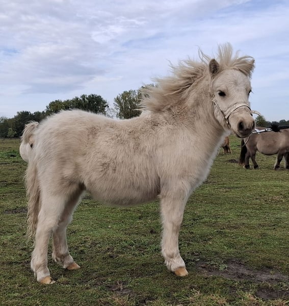 Wir bieten aus unserer liebevollen Minishetlandzucht einen weiteren typvollen und vielversprechenden Hengst zur Abgabe an. Nero Geb.: 25.04.2025 Farbe: Fuchsisabellschecke Vater: Golden Nugget vom Haselbusch Mutter: Elmhorst Blossom (StPrSt) Er wächst in der Herde auf, ist regelmäßig entwurmt, gechipt und mit vollen Papieren des Ponyverbandes Brandenburg-Anhalt. Wir wünschen uns für ihn ein artgerechtes Zuhause, in dem ihre Qualität geschätzt wird.