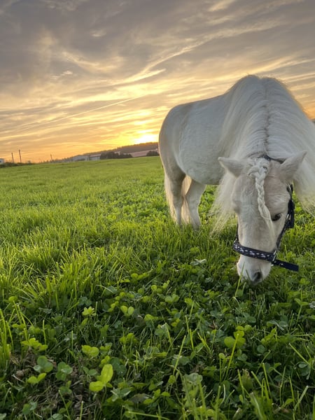 **Features:** - **Breed:** Mini Shetland Pony - **Gender:** Stallion - **Year of Birth:** 2017 - **Color:** Palomino pinto - **Height:** 75 cm He is driven, accustomed to rider weight, and also walks nicely alongside a bicycle or inline skates. 100% safe with fences, even without electricity. He has super nice movements and a great coat. Price is negotiable for a good home. Feel free to contact for further questions.
