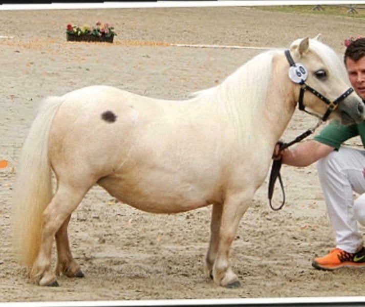 A beautiful, robust, self-bred mare from our family breeding program. Halter-trained, handleable by children, hoof trimming with a rasp possible, traffic-safe, familiar with dogs, cats, mice – all everyday sounds – never ill, no eczema, no laminitis. She is currently in our foal-rearing herd, living in a small mixed group in an open stable. Pandora has a calm, friendly temperament – she easily follows others and always behaves thoughtfully and very well-behaved. She has a strong, solid foundation and would certainly make a good broodmare. The second-to-last picture shows her mother, Many Minis Panama – a state premium mare. The last picture features her sire, Fleetwood Ley Piano – a South German premium stallion. More pictures and videos are available upon request or at: www.km-minishetlands.de https://www.facebook.com/kmstallions.de/