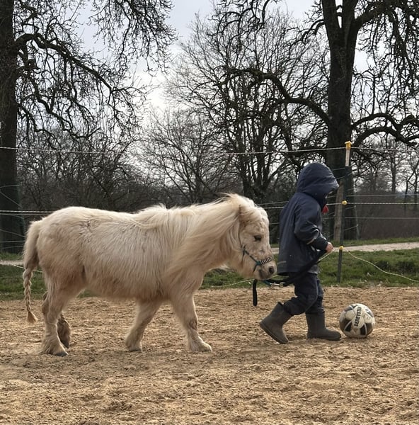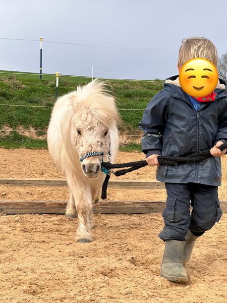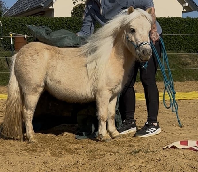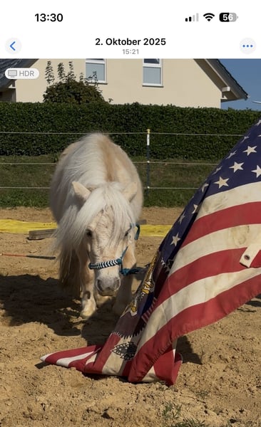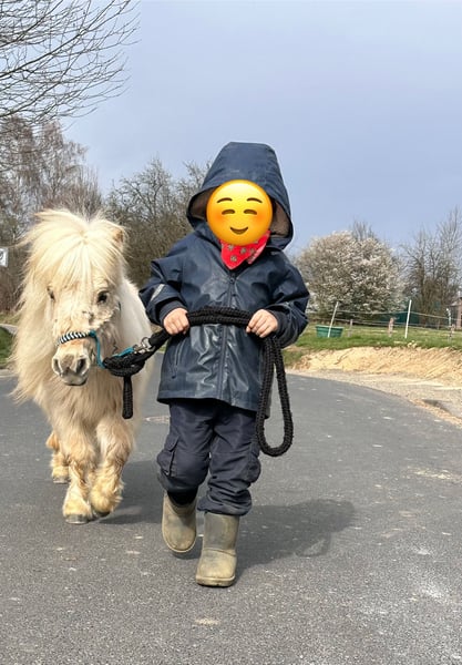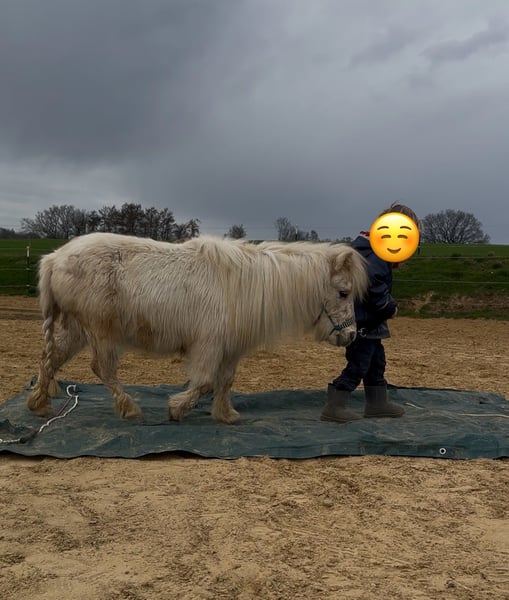 Wir suchen auf diesem Weg ein tolles für immer zuhause für unsere wundervolle Mini- Shetty Stute. Name: Elmhorst Kamea (von uns Amy genannt) Geboren: 24.04.2023 Größe: Aktuell ca. 78 cm Farbe: traumhaftes Palomino Abstammung: Vater: Elmhorst Mascapone Mutter: Kamille van Stal Ankeveen Amy ist eine typvolle, fein gebaute Mini-Stute mit ausdrucksstarkem Köpfchen und ganz besonderer Ausstrahlung. Sie vereint Charme, Neugier und eine schöne Portion Gelassenheit. Trotz ihres jungen Alters bringt sie bereits einiges mit: ✨ leichte Bodenarbeit ✨ anlongiert ✨geführt werden von Kindern ✨Kindergewicht ohne Sattel und Gurt im führen (2x gemacht bisher) ✨ kennt Spaziergänge ✨ brav beim Putzen ✨ artig beim Schmied ✨ kennt Hänger fahren ✨ war beim Vorbesitzer (Züchter) mit im Altenheim und zeigte sich dort ruhig und souverän Sie ist menschenbezogen, aufmerksam und möchte gefallen. Kein Beißen, kein Treten – sondern ein ehrliches, freundliches Pony, das mit seinem Menschen durch dick und dünn gehen möchte. Amy eignet sich zukünftig als liebevolles Kinderpony (mit weiterer Ausbildung), als Freizeitpartner oder auch für jemanden, der ein besonderes Mini-Pony weiter fördern möchte. Amy steht derzeit in einer Shetty Herde in Offenstallhaltung. Aufgrund ihrer guten Abstammung ist sie sicherlich auch für die Zucht interessant. Amy ist gesund und wurde regelmäßig entwurmt. Es ist eine Pferdettainerin vor Ort, falls Amy weiter ausgebildet werden soll. Dies kann man nach Aufpreis absprechen. Sie wird nur in allerbeste, verantwortungsvolle Hände abgegeben. Amy wird nur wegen Zeitmangel verkauft. Kein Notverkauf! Platz vor Preis. Es ist ein Trainingsvideo vorhanden. Dies wird aber nur bei ernsthaftem Interesse privat verschickt.