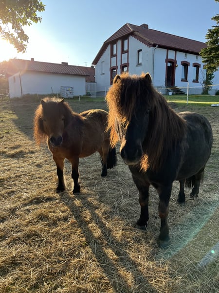 Herzensplätze für zwei Minishettys gesucht – Dropsi & Gulliver Aufgrund einer wohnlichen und gesundheitlichen Veränderung kann ich meine beiden Minishetty-Wallache Dropsi und Gulliver leider nicht mehr selbst halten. Diese Entscheidung tut mir sehr weh und ist mir alles andere als leicht gefallen. Umso wichtiger ist mir, dass beide ein Zuhause finden, in dem sie gesehen, verstanden und von Herzen aufgenommen werden.  ✨ Dropsi – ca. 20 Jahre, ca. 90 cm, Rappe Sensibel, feinfühlig, keine typischen Shetty-Manieren. Er läuft verlässlich am Langzügel und an der Hand neben der Kutsche. Ruhiges, strukturiertes Umfeld gewünscht. Gesundheitlich: zweimal Hufrehe in den letzten vier Jahren, Cushing ausgeschlossen, bei nicht bewässertem Heu Husten.  Gulliver – 13 Jahre, ca. 85 cm, braun Verspielt, munter, sehr gelehrig, kinderlieb, manchmal ponytypisch frech. Ein- und zweispännig gefahren, zuletzt einspännig. Gesund, keine bekannten Erkrankungen.  Haltung aktuell: Tagsüber Auslauf ohne Gras, täglich ca. 1–2 Stunden Weidegang, nachts im Stall. Im Sommer 24/7 im Auslauf.  Gesucht wird: Ein liebevolles, verantwortungsvolles Zuhause, gerne mit kleiner Herde und Familienanschluss. Mein größter Wunsch ist, dass beide gemeinsam in dasselbe Zuhause ziehen dürfen – das ist jedoch kein Muss. Wichtig ist vor allem, dass sie einen wirklich passenden, herzlichen Platz finden.  Wichtig: Ich bitte ausdrücklich von unpassenden oder wertenden Kommentaren abzusehen. Diese Entscheidung ist sehr schmerzhaft für mich. Bitte nur melden bei ernsthaftem Interesse. Weitere Informationen teile ich gerne per Privatnachricht mit.