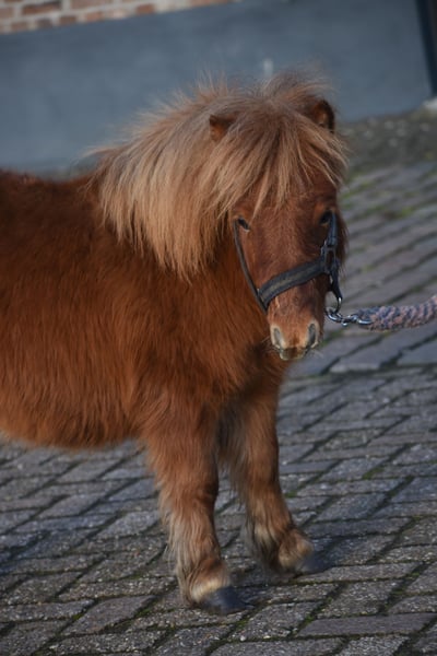 Ontmoet Takkie, een mooie, kerngezonde Shet van ruim een jaar oud en onder een meter hoog. Vanaf het eerste moment waren wij op slag verliefd, en dat is ook niet zo gek als je kijkt naar zijn lieve hoofdje en zijn sprankelende oogjes. Daarnaast is hij heel sociaal en kan hij echt goed lopen! Het is dan ook een kruising met een mini paard. Takkie is hier binnengekomen als hengst. Ook toen was hij hier al ontzettend braaf en nuchter in de omgang. Inmiddels is hij ruin Omdat hij nog jong is, ligt de hele toekomst nog voor hem open. Je kunt samen met hem groeien en in alle rust kijken waar zijn talenten liggen. Wordt hij jouw toekomstige menpony voor de kar? Of zie je hem straks schitteren onder het zadel? Hij loopt nu al netjes mee met de wandelingen langs de weg, terwijl het grootste verkeer voorbij raast. Wie gaat er met deze knapperd een leuke toekomst tegemoet? Prijs: 895,00