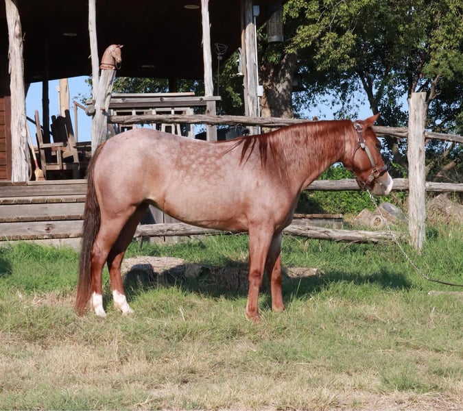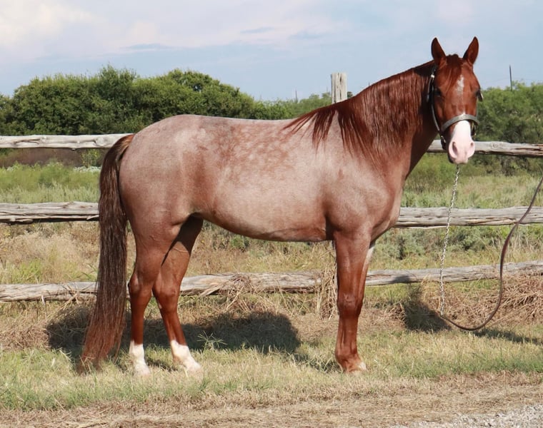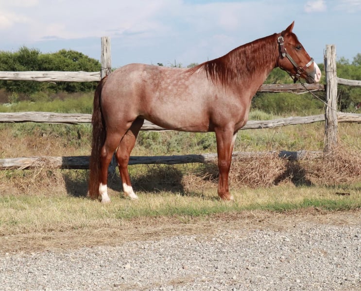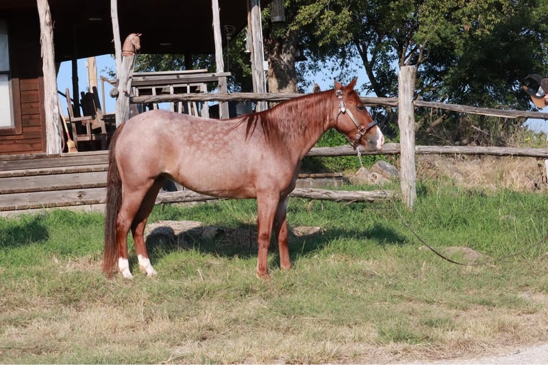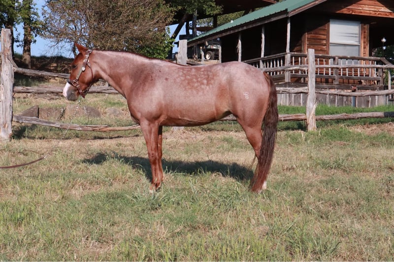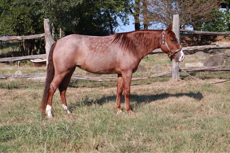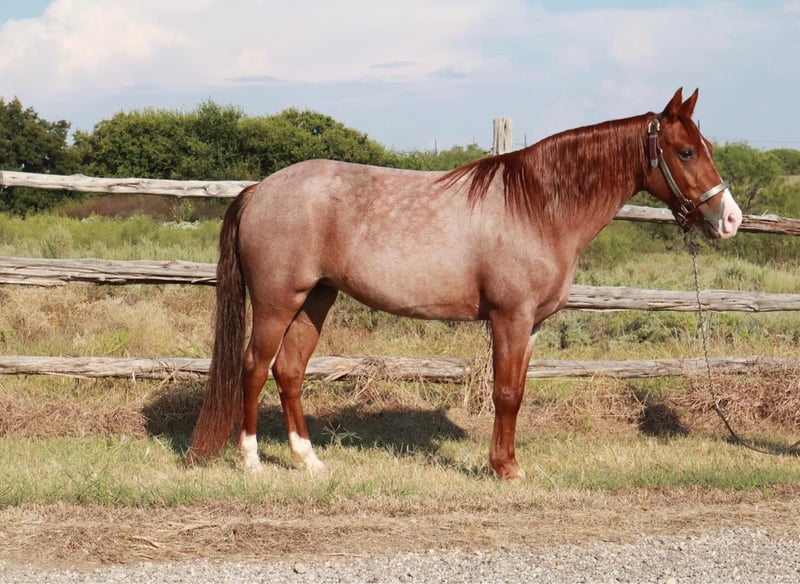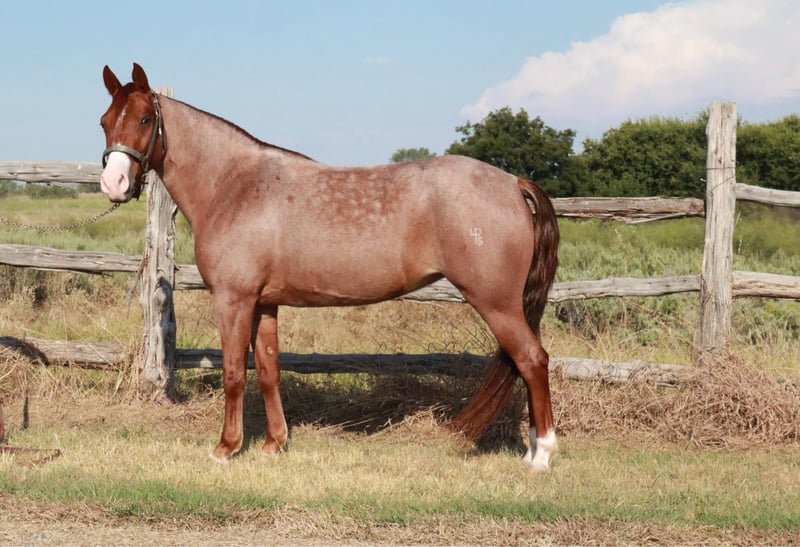 AVAILABLE ON ONLINE HORSE AUCTION AT www DOT MagicHorseAuction DOT com BIDDING OPEN NOW thru TUESDAY | September 30TH! - BUY IT NOW AVAILABLE! *Final price will be determined on auction site* CONSIGNOR CONTACT INFO: 4Ps Horses 940-882-0269 LOCATION: Wichita Falls, TX "Cash’s Red Storm 4Ps Horses is proud to introduce Cash’s Red Storm. Storm is a home raised registered 4 year old red roan Missouri Foxtrotter mare. She will be in the pony registry. She is a daughter of the great Boss’ Midnight Cash and out of our favorite pony mare. Storm has been the favorite for everyone who has ever seen her or been around her. We have had people calling for two years about this mare and now she is finally ready for the public. This stunning mare stands a solid 13.1 and a half hands. She is built like you would want one. She is stout enough to carry a 200lb man for hours and she is kind enough to take care of a 10yr old girl for days on end! This is the perfect horse for anyone who isn’t fond of climbing up on a big horse or struggles to find a rock or tree stump everytime you get off on the trails. This little mare will walk with a big horse and also has the laid back personality to just chill with your quarter horse friends. Red Storm is safe around traffic, atvs, bicycles and wildlife. We have used her on the trails, checking cattle daily, rode her down the highway and hauled her to a horse show just for fun! She was the the talk of the town! If your looking for something that turns every head on or off the trails and will be a fun mount for the whole family…here she is. This mare is truly one of a kind!! After talking to all the other breeders in the MFTHBA we have came to the conclusion this mare is the only one. She is the only red roan mare that will mature under 14h. And her gait is so smooth with a great canter and easily picks up both leads. She has been introduce to the poles and barrels and she loves it! We have also sorted cattle on her. As you will see in the video she is ready for the novice or experienced rider and will be a great step up horse. She will ride to the persons ability, and that’s what we love about her so much. Horses like this are hard to find. Thank you for your time and please contact us to come ride her or for any additional questions. 4Ps Horses Jeff 940-882-0269 Kristy 361-960-8301