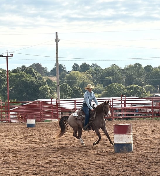 Beschikbaar op de online veiling van www DOT MagicHorseAuction DOT com Biedingen open nu tot en met dinsdag | 30 september! - Nu bieden of direct kopen mogelijk! *De uiteindelijke prijs wordt bepaald op de veilingwebsite* Verkoper contactgegevens: 4Ps Horses 940-882-0269 LOCATIE: Wichita Falls, TX "Cash’s Red Storm" 4Ps Horses is trots om Cash’s Red Storm voor te stellen. Storm is een thuis gefokte, geregistreerde, 4-jarige rode roan Missouri Foxtrotter merrie. Ze zal deelnemen aan de pony-registratie. Ze is een dochter van de beroemde Boss’ Midnight Cash en afkomstig van onze favoriete ponymerrie. Storm is altijd de favoriet geweest bij iedereen die haar heeft gezien of met haar in contact is geweest. We krijgen al twee jaar telefoontjes over deze merrie, en nu is ze eindelijk klaar voor het publiek. Deze prachtige merrie is ongeveer 1,65 m (13.1½ handen) hoog. Ze is gebouwd zoals je zou willen dat een paard is: stevig genoeg om een man van 90 kg urenlang te dragen en zachtaardig genoeg om dagenlang voor een 10-jarig meisje te zorgen! Dit is het perfecte paard voor iedereen die niet graag op een groot paard klimt of moeite heeft om telkens een rots of boomstronk te vinden wanneer je van de trail afstapt. Deze kleine merrie loopt naast een groot paard en heeft ook de ontspannen persoonlijkheid om gewoon te chillen met je quarter horse-vrienden. Red Storm is veilig in het verkeer, bij ATV’s, fietsen en wildleven. We hebben haar gebruikt op de trails, dagelijks koeien gecontroleerd, op de snelweg gereden en haar meegenomen naar een paardenwedstrijd voor de lol! Ze was het gesprek van de dag! Als je op zoek bent naar iets dat alle aandacht trekt op of naast de trail en dat een leuke mount is voor het hele gezin… hier is ze. Deze merrie is echt uniek!! Na overleg met andere fokkers van de MFTHBA zijn we tot de conclusie gekomen dat deze merrie de enige is. Ze is de enige rode roan merrie die onder de 14 hand groeit. Haar gang is zo soepel, met een geweldige draf en ze pikt gemakkelijk beide leads op. Ze is geïntroduceerd in de pole- en barrelraces en vindt dat geweldig! We hebben haar ook koeien laten sorteren. Zoals je in de video kunt zien, is ze geschikt voor zowel beginnende als ervaren ruiters en vormt ze een goede opstap. Ze rijdt op het niveau van de ruiter en dat is wat we zo leuk vinden aan haar. Paarden zoals dit zijn moeilijk te vinden. Bedankt voor je tijd en neem gerust contact met ons op om haar te komen rijden of voor meer vragen. 4Ps Horses Jeff 940-882-0269 Kristy 361-960-8301