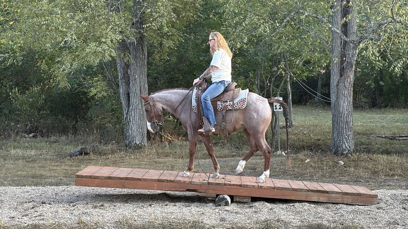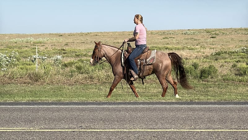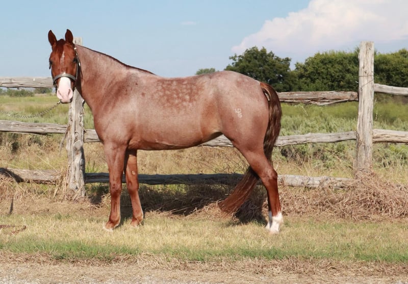 DISPONIBLE sur la vente aux enchères en ligne sur www DOT MagicHorseAuction DOT com ENCHÈRES OUVERTES MAINTENANT jusqu’au mardi 30 septembre ! - ACHAT IMMÉDIAT POSSIBLE ! *Le prix final sera déterminé sur le site de la vente aux enchères* INFOS DE CONTACT DU CONSIGNATEUR : 4Ps Horses 940-882-0269 LIEU : Wichita Falls, Texas « Cash’s Red Storm » 4Ps Horses est fier de présenter Cash’s Red Storm. Storm est une jument de Missouri Foxtrotter rouge roan, née en élevage maison, âgée de 4 ans. Elle sera inscrite au registre des poneys. Elle est une fille du célèbre Boss’ Midnight Cash et issue de notre jument poney préférée. Storm a toujours été la favorite de tous ceux qui l’ont vue ou côtoyée. Nous recevons des appels depuis deux ans à son sujet, et elle est enfin prête à être présentée au public. Cette magnifique jument mesure environ 1,65 m (13.1½ mains). Elle a la carrure idéale : suffisamment robuste pour porter un homme de 90 kg pendant des heures, tout en étant douce et attentive pour prendre soin d’une fille de 10 ans pendant plusieurs jours ! C’est le cheval parfait pour ceux qui hésitent à monter sur un grand cheval ou qui ont du mal à trouver un rocher ou un tronc d’arbre à chaque sortie en randonnée. Cette petite jument marchera aux côtés d’un grand cheval et possède aussi une personnalité détendue, idéale pour se détendre avec vos amis quarter horse. Red Storm est sûre en présence de trafic, quads, vélos et faune sauvage. Nous l’avons utilisée en randonnée, pour vérifier le bétail quotidiennement, l’avons montée sur la route et l’avons emmenée à un concours hippique pour le plaisir ! Elle a fait sensation dans toute la ville ! Si vous cherchez un cheval qui attire tous les regards en forêt ou en randonnée et qui sera un compagnon amusant pour toute la famille… la voici. Cette jument est vraiment unique en son genre ! Après avoir consulté tous les autres éleveurs de la MFTHBA, nous sommes convaincus qu’elle est la seule. C’est la seule jument rouge roan qui atteindra moins de 1,65 m à maturité. Son allure est si fluide, avec un galop excellent et elle change facilement de pied. Elle a été introduite aux barres et aux poteaux, et elle adore ça ! Nous l’avons également utilisée pour trier du bétail. Comme vous pourrez le voir dans la vidéo, elle est prête pour un cavalier débutant ou expérimenté, et constituera une excellente monture pour progresser. Elle monte selon les capacités du cavalier, et c’est ce que nous aimons tant chez elle. Des chevaux comme celui-ci sont rares à trouver. Merci pour votre temps, n’hésitez pas à nous contacter pour venir l’essayer ou pour toute question supplémentaire. 4Ps Horses Jeff 940-882-0269 Kristy 361-960-8301