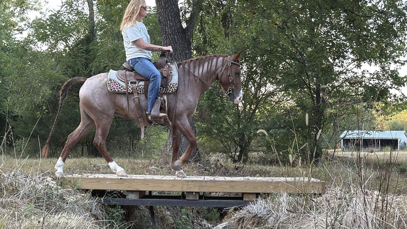 VERFÜGBAR beim Online-Pferde-Auktion unter www DOT MagicHorseAuction DOT com GEBOT BIS DIENSTAG, 30. September! – KAUF-OPTION „Jetzt kaufen“ verfügbar! *Der endgültige Preis wird auf der Auktionsseite festgelegt* VERKÄUFER-KONTAKT: 4Ps Horses, 940-882-0269 STANDORT: Wichita Falls, Texas „Cash’s Red Storm 4Ps Horses freut sich, Cash’s Red Storm vorzustellen. Storm ist eine zuhause aufgezogene, eingetragene, vierjährige rot-gescheckte Missouri-Foxtrotter-Stute. Sie wird im Pony-Register geführt. Sie ist eine Tochter des großartigen Boss’ Midnight Cash und stammt von unserer Lieblingspony-Stute ab. Storm ist bei jedem, der sie gesehen oder mit ihr gearbeitet hat, äußerst beliebt. Seit zwei Jahren erhalten wir Anrufe von Interessenten, die nach ihr fragen, und jetzt ist sie endlich für die Öffentlichkeit bereit. Diese beeindruckende Stute ist fest im Stockmaß bei etwa 13,1½ Hand. Sie ist genau gebaut, wie man es sich wünscht. Sie ist robust genug, um eine 90-kg-Frau stundenlang zu tragen, und gleichzeitig freundlich genug, um sich um ein zehnjähriges Mädchen tagein, tagaus zu kümmern! Das ist das perfekte Pferd für alle, die es nicht mögen, auf ein großes Pferd zu klettern, oder Schwierigkeiten haben, bei den Trails jedes Mal auf einen Felsen oder Baumstumpf zu steigen. Diese kleine Stute geht mit einem großen Pferd und hat auch die ruhige, gelassene Persönlichkeit, um einfach mit deinen Quarter-Horse-Freunden zu entspannen. Red Storm ist sicher im Straßenverkehr, bei ATVs, Fahrrädern und Wildtieren. Wir haben sie auf Trails eingesetzt, zum täglichen Rindercheck, auf der Straße geritten und zu einem Pferdeshow mitgenommen – nur zum Spaß! Sie war das Gesprächsthema der Stadt! Wenn du etwas suchst, das alle Blicke auf sich zieht, ob auf oder abseits der Trails, und das eine tolle Begleiterin für die ganze Familie ist… hier ist sie. Diese Stute ist wirklich einzigartig! Nach Gesprächen mit anderen Züchtern der MFTHBA sind wir zu dem Schluss gekommen, dass es keine andere wie sie gibt. Sie ist die einzige rot-gescheckte Stute, die unter 14 Hand groß wird. Ihr Gang ist so geschmeidig, mit einem großartigen Trab und einem leichten, flüssigen Galopp, bei dem sie beide Führungen mühelos aufnimmt. Sie wurde an Stangen und Barrel gewöhnt und liebt es! Wir haben sie auch beim Rinderrichten eingesetzt. Wie im Video zu sehen ist, ist sie sowohl für Anfänger als auch für erfahrene Reiter geeignet und wird ein großartiges Aufstiegspferd sein. Sie passt sich den Fähigkeiten ihres Reiters an, und genau das lieben wir so sehr an ihr. Pferde wie dieses sind schwer zu finden. Vielen Dank für Ihre Zeit. Bitte kontaktieren Sie uns, um eine Probefahrt zu vereinbaren oder bei weiteren Fragen. 4Ps Horses Jeff 940-882-0269 Kristy 361-960-8301