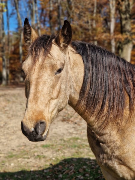White Clouds Cisco Born 12.06.2020 Missouri Foxtrotter with papers Buckskin with bronze sheen, Sunny boy with perfect looks and conformation a dream for all disciplines a powerhouse sure-footed trail-savvy leads confidently, but fits in any position very comfortable enduring brave independent robust stable short-backed willing to work people-oriented Beautiful gallop first at the fence curious playful funny bold diligent healthy quick learner expert in groundwork delicate and quick to respond Basic training with horseman trainer Michael Rieser November/December 2024 with gaited horse trainer Vierhaus (@ photos by Ellen Vierhaus) For further training and development of the flatfoot walk not yet fully balanced in dressage work but super reliable and cool in difficult terrain I bought him as a foal because he promised to be a natural collector like his father and inherited his great, calm temperament. Therefore, I bought his half-brother, who will be significantly larger. CISCO now needs a rider with experience, someone who can sometimes assert themselves calmly and confidently, as he is still at the beginning of his training and hasn't done much yet, completely unspoiled. accustomed to year-round pasture with open stable, mixed group, high-ranking greedy, so you need to watch his weight already. has already completed his first small trail ride with flying colors, only found the turkeys spooky, but then kept up easily with the big Tennessee Walkers very good strong hooves, barefoot so far healthy and lively naturally dewormed and vaccinated
