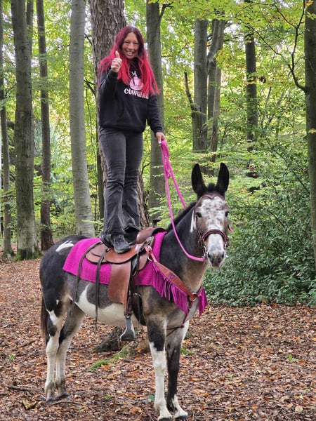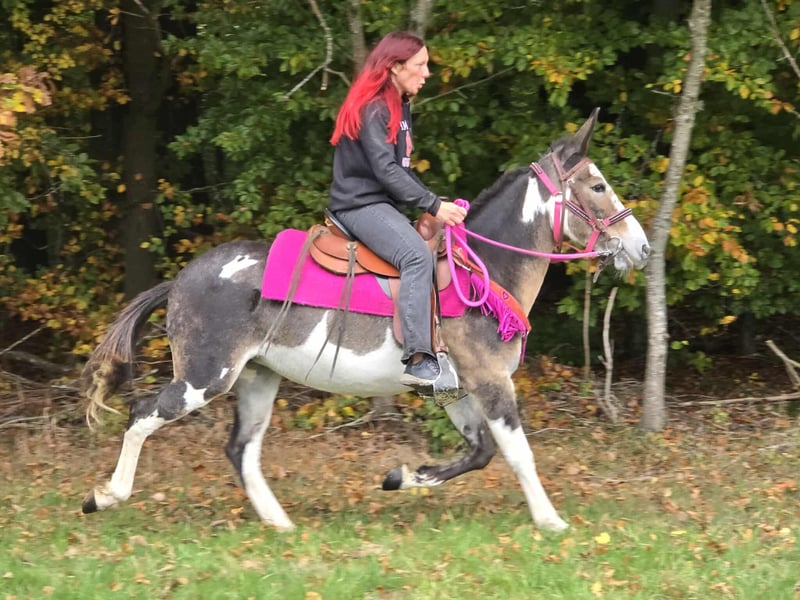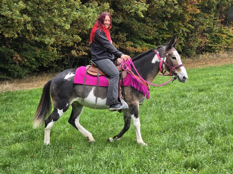 Freizeit-Mulistute „ für Freizeit und Gelände* *Alter*: 13 Jahre geritten und gefahren *Stockmaß*: ca. 1,45 m *Ausstattung*: E-Pass, Microchip ist vorhanden *Preis*: .5900 € * geritten und gefahren * Eine schöne Stute die sich ideal für das Gelände- und Wanderreiten eignet. Sie ist ein vielseitiger Freizeitkumpel , das sowohl für englisches als auch für westliches Reiten bestens geeignet ist . Sie hat ein tolles, ausgeglichenes Wesen und fühlt sich in der Herde wohl, ist aber auch in der Box gut aufgehoben. ### *Das zeichnet sie aus:* - Offenstall- und Herdenhaltung gewohnt, Boxenhaltung ist ebenfalls kein Problem - Ideal für Freizeit- und Geländereiter - Sehr ausgeglichen und unkompliziert im Umgang *Interesse?* Rufen Sie uns gerne an unter *0171-4001968* (täglich von 8–20 Uhr). *Bitte keine Mails oder WhatsApp, nur Anrufe!* *Zusätzliche Informationen:* - Zubehör und Transport können günstig organisiert werden. - Unser Hofladen bietet eine kleine Auswahl an gebrauchten Westernsätteln. - *Ratenzahlung ist nicht möglich.* *Service für Kunden:* - Jeder Kunde erhält ein vertraglich festgesetztes *Umtauschrecht von drei Monaten.* - Ein Proberitt bei uns ist möglich, damit Sie Ihr Traumpferd kennenlernen können. Für 35 Euro können Sie reiten, sich ihn vorreiten lassen, spazieren gehen oder mehr. Auf Wunsch können Sie auch ein zweites Pferd testen für 25,- . Dieser Betrag wird beim Kauf eines Pferdes am gleichen Tag selbstverständlich verrechnet. *Besonderheiten:* - Bei sofortiger Abholung mit Pferdeanhänger erhalten Sie *einen Nachlass von 100 Euro.* - Wir absolvieren den Verkauf mit einem transparenten Proberitt, um sicherzustellen, dass es das richtige Pferd für Sie ist. *Rechtliches:* - Wir sind alleinige und uneingeschränkte Eigentümer der Bilder; die Bildrechte liegen bei uns. *Fremdverwendung der Bilder ist verboten.* - Bitte beachten Sie, dass es sich um ein lebendes Pferd handelt. Unsere Angaben basieren auf den Eindrücken des Betreuers und stellen keine zugesicherten Eigenschaften dar. - Anzeigen werden sofort gelöscht, sobald die Pferde verkauft sind. *Interesse?* Rufen Sie uns gerne an unter *0171-4001968* (täglich von 8–20 Uhr). *Bitte keine Mails oder WhatsApp, nur Anrufe!