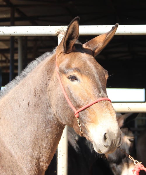 All of our noble mules have been ridden and are safe for traffic. They are not skittish and are regularly taken to Romerías and Ferias (Spanish festivals), so they are accustomed to a certain level of noise and commotion. The handsome gelding is gentle with the rider, well-behaved in handling, and suitable for relaxed rides. Upon request, he can be entrusted to us for further training. International transportation can be arranged.