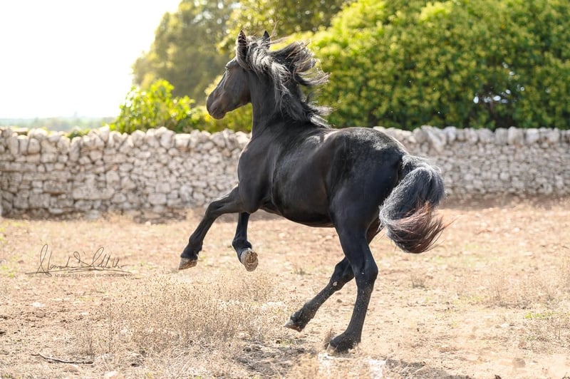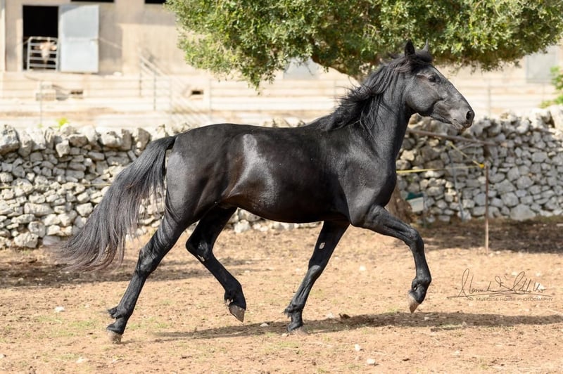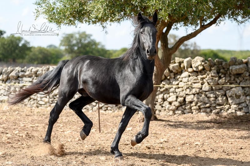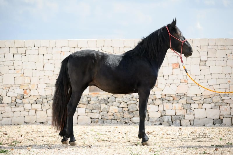 Titanio is a typical Murgese - square, practical, and good - currently standing at approximately 154cm. He was raised in a very loving family breeding program, together in a herd, as is customary for a Murgese. The breeding operation - Michele Recchia - has become a hidden gem for high-quality Murgese, who are calmly accustomed to human contact, allowing the young horses to learn the basics without haste and stress, while also meeting the typical criteria of this breed. We can well imagine Titanio as a leisure and family horse. However, he also has the potential to advance into a higher level of training, with disciplines such as classical riding or Working Equitation being advantageous for him. If you would like to know more about Titanio, we look forward to your message. Castration on request can be done on-site. X-ray images are available and can be viewed upon serious interest. We also plan everything else for you - clinical pre-purchase examination, handling of the purchase contract, transport to your home stable, etc. Cavallo Murgese.de - on behalf of and in collaboration with the Italian Murgese Association A.N.A.M.F.