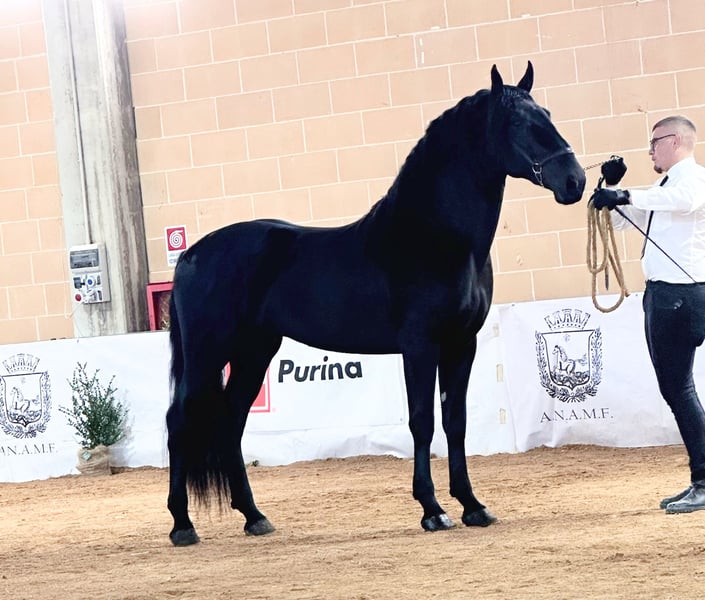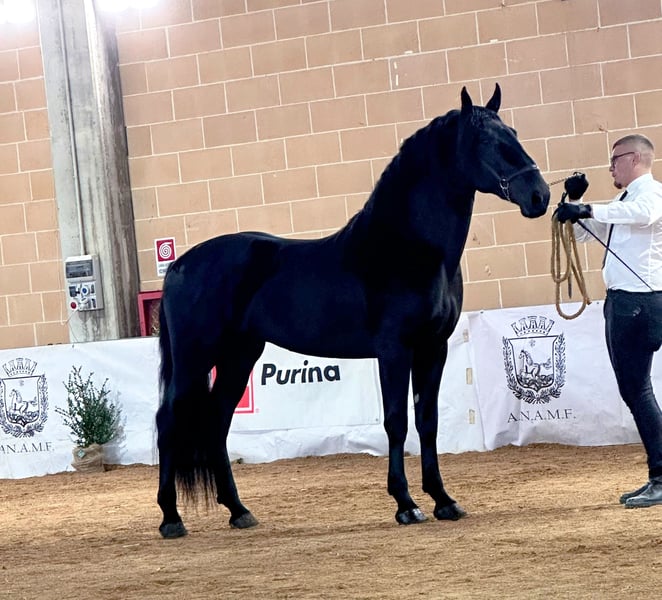 Tamigi delle Lame Der Preis versteht sich inklusive der Kosten für die Kastration vor Ort in Italien. Tamigi ist liebevoll aufgewachsen und wird in Ruhe, Geduld und mit Know how auf sein späteres Leben vorbereitet. Das Jungpferde ABC sitzt sehr gut, er ist cool und auch in stressigen Situationen absolut lässig. Aktuell ist er ca 161 groß, Endmaß wird geschätzt auf 164 cm. Tamigi ist ein typvoller barocker Vertreter seiner Rasse, hier hat er viel von seinem Vater vererbt bekommen. Sein Charakter ist jungpferde typisch neugierg, aufgeschlossen und manchmal ein bisschen hinterfragend. Wer mehr über Tamigi wissen möchte – wir freuen uns über Deine Nachricht. Röntgenbilder sind vorhanden und bei ernsthaftem Interesse natürlich einsehbar. Ebenso planen wir alles weitere für Dich – klinische Ankaufsuntersuchung, Abwicklung des Kaufvertrages, Transport in Deinen Heimatstall usw. Cavallo Murgese.de – im Auftrag und Zusammenarbeit des italienischen Murgesenverbandes A.N.A.M.F.
