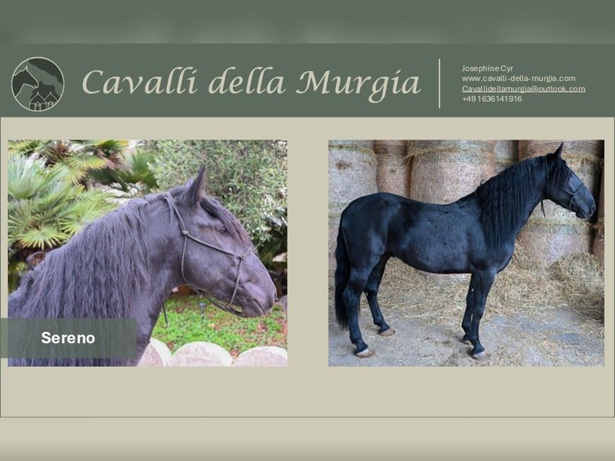 Sereno ist ein 2022 geborener Murgesenhengst, welcher sich momentan in Apulien, Italien befindet. Er hat einen tollen Charakter und ist dem Menschen liebevoll zugewandt. Zudem ist er stets aufmerksam und verfügt über ein sehr angenehmes Temperament. Sereno ist ein Murgese im Barocken Typ mit einer sehr hohen Versammlungsfähigkeit und einer sehr schönen Galoppade. Sein toller Charakter und seine guten Gangarten sorgen dafür, dass Sereno in Zukunft vielseitig einsetzbar ist und seinem neuen Besitzer sicherlich viel Freude bereiten wird. Sereno wird von Cavalli della Murgia vermittelt. Aus diesem Grund steht er zurzeit bei seinem Züchter in Italien, wo er bei Interesse gerne besichtigt werden kann. Bei weiteren Fragen stehen wir Ihnen gerne zu Verfügung. Sereno hat ihr Interesse geweckt? - gerne helfen wir Ihnen dabei einen Besuch in Italien zu organisieren. Ebenfalls helfen wir Ihnen gerne bei - der Abwicklung des Kaufvertrags, dem Transport nach Deutschland, sowie einer AKU Röntgenbilder liegen vor und können auf Wunsch gerne eingesehen werden. Weitere Bilder und Videos sind auf Anfrage möglich. Bei weiteren Fragen, melden Sie sich gerne bei cavallidellamurgia@outlook.com