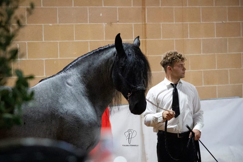 Jeśli szukasz wyjątkowego konia z dużym potencjałem i urokiem, to Pericle może być idealnym wyborem. Pericle zachwyca nie tylko swoją rzadką i imponującą maścią Blue Roan, ale także swoim szczerym charakterem. Zna siodło i był już jeżdżony, chociaż jego ostatni występ w siodle miał miejsce jakiś czas temu. Jego wzrost wynosi około 160 cm. Pericle obecnie jest jeszcze ogierem w Włoszech. Na życzenie może zostać kastrowany (już wliczone w cenę). Czekamy na zapytania – chętnie udzielimy dodatkowych informacji i prześlemy filmy. Chcesz osobiście poznać Pericle'a? Zapraszamy na podróż do jego rodzinnych stron w Apulii. Oczywiście dostępne są zdjęcia rentgenowskie. Badanie lekarskie może zostać przeprowadzone na miejscu na życzenie. Planujemy również wszystkie inne sprawy dla Ciebie - realizację umowy kupna, transport do Twojej stajni itp. Cavallo Murgese.de - w imieniu i we współpracy z włoskim stowarzyszeniem koni Murgesa A.N.A.M.F.