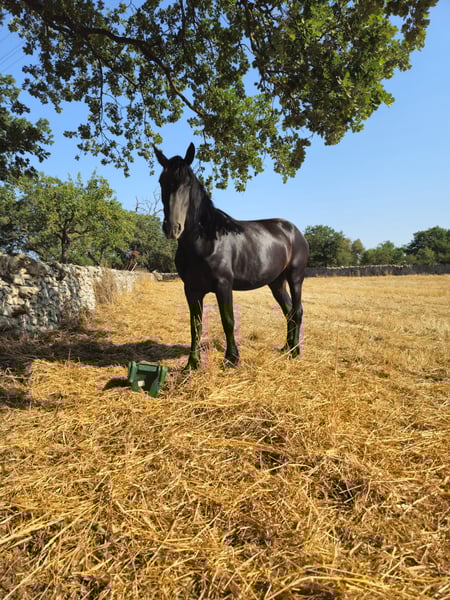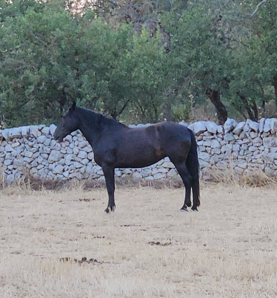 Today we are introducing Quera di Capoiazzo. Quera was born in our herd on May 2, 2020, so she will be 5 years old this spring. Quera grew up in our herd of Murgese broodmares, confronting horses of all ages during these almost 5 years. This has made her extremely relationally competent; she is a calm mare with other horses, is not aggressive and can relate to both older and younger subjects safely. In addition, she is not anxious, either relative to resources or at the time of removing her from the herd. She has had only positive experiences with humans, is able to box, and we are working through positive reinforcement, on her skills related to grooming, foot care and longe work. In October 2024, she was evaluated and approved as a broodmare with a very good score. Quera really represents an excellent opportunity for those who are looking for a horse that is healthy, and ready to start working on her saddle taming, without running the risk of doing premature work that could ruin her physique. She will be 5 years old shortly, and has not undergone any taming or early work that could compromise her. She is a very typical mare, even in her temperament. While she is sociable, she is one of those horses that bonds very closely to a few people in particular, giving them her whole self. Quera is excellent for those who want a companion for life with whom to work in classical riding, work riding and enjoy walking and trekking. Quera is a mare who does not spook easily, who reflects and reasons. We are looking for a permanent family for her that can take her in and make a lifelong journey. We are available to help you in the buying process: - by sending you all the photos, videos and documents you need for a long-distance purchase, - welcoming you if you wish to come to our kennel to meet her in person, - supporting you to arrange veterinary visits according to your wishes, - arranging transportation and its related documentation. You can visit our website: https://masseriacapoiazzo.it/ and our socials: instagram: https://urly.it/3ajhc Facebook: https://urly.it/3ajhd and contact Paola on whatsapp at: +393465232016 for any information, request, doubt or curiosity. -->Ours is a historical breeding, our Murgese horses live on the murgia 24/7. We have selected our broodmares so that we have more and more confident horses and we spend time in the herd every day, both to check their health and to create strong relationships with the foals and make them experience the man as a friendly presence. We apply scientific theories related to fear- and constraint-free learning modes to their grooming.