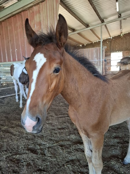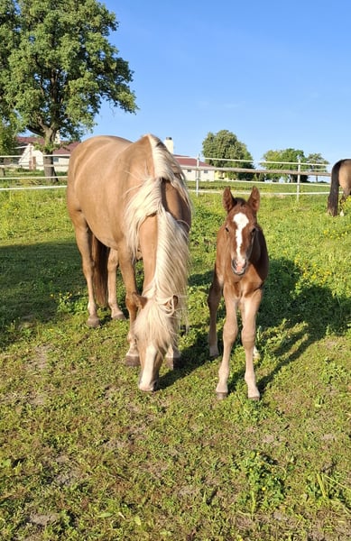 Pearl was born on 29.08.2024 with and in the herd here in Germany. She is a Tabiano with a blue eye, something very special. She is a self-confident young lady who likes to do things with people. She is curious and always comes here. Parents both Mustang Sire: Inferno #625 Mother: Princess # 671 Further Asbt parentage detectable If you would like to get to know the little mouse, please get in touch. We are expecting several foals this year 2025, please contact us here if you are interested. MustangxMustang Pearl will be sold in June when she is 9 months old, after that the price for her will increase. We are also happy to bring the little mouse to her new home. Best regards The Schnell family from BW 74635 Kupferzell