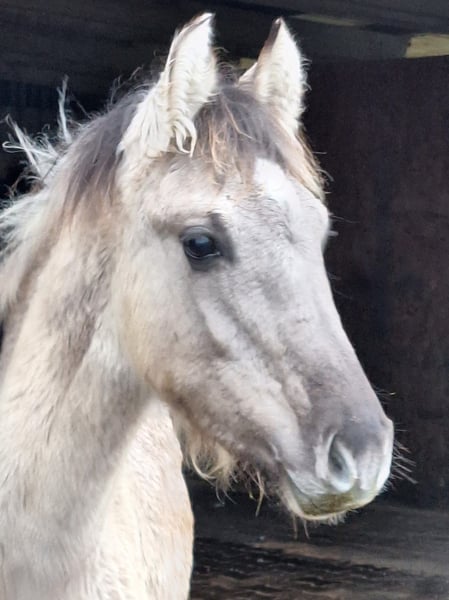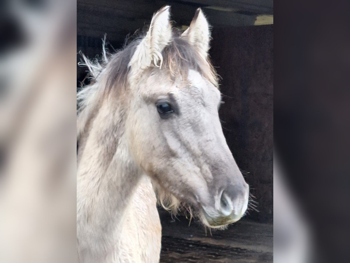 For sale is a handsome Kiger Mustang colt born on June 24, 2025, in the Grullo color with a two-tone mane. LJ-Aurelio is a little gem, friendly in handling and working appropriately for his age. He currently still lives with his mother and aunt. After weaning, he will be moved to a stallion group to learn important social skills. His expected height is approximately 15.8 hh. He can stay with us for further upbringing if desired. For more information, please contact us at 0173 9521224.