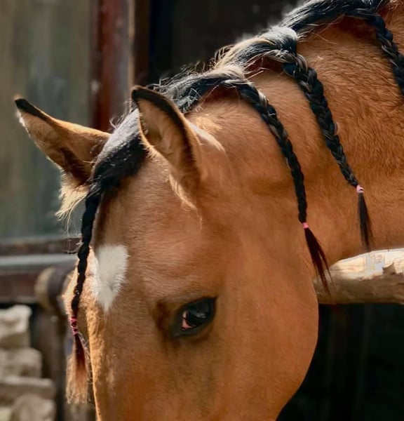 Priority over Price Aramis is a dream horse! If you're looking for an authentic, beautiful Mustang for self-education and a lifelong companion, you've come to the right place. He was bred in Sweden, at the renowned Kiger Mustang breeding farm Monasdotter. Both of his parents are true wild catches! He is registered in the USA with KHAR as well. For us, Aramis is a true family member. We go for walks with him, during which he comfortably carries his saddle and shows no fear in the woods or on the pasture. We also longe him, but the clever stallion finds that a bit boring and quickly loses interest. Aramis learns quickly and enjoys completing tasks that are set for him with enthusiasm. He is curious, well-mannered, and has an absolutely wonderful character. He is a very handsome horse, with good posture and a classic silhouette, complemented by his long, black mane and tail, and the characteristic wild horse markings on his legs. His good looks are only surpassed by his charm. Therefore, Aramis is also very interesting for breeding! Of course, he is regularly dewormed, and hoof care is easily managed with a grinder. What is important to us and him: he is kept in an open stable environment. Aramis has a lung condition, but this does not restrict him in daily life. He receives high-quality hay from us, which does not need to be soaked. Due to circumstances, we have to part with him reluctantly, and a good, caring home is an absolute must for us. Therefore, for us, priority goes to a suitable home over the price! If you're interested, feel free to make us an offer. And if you have any further questions, please don't hesitate to contact us.