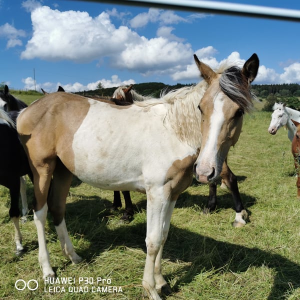 MUSTANG PAINT MIX SKY es ist eine Stute aus unsere Mustang Stute Silver von dem Mustang MAKE OVER !!! SIE IST super hübsch und ihr könnt alle, Videos von der Mutter sehen !!! SEHR großrahmig und stabil ,so wird CA 160 cm , UND IST MEGA GROß und Kräftig !!!! Dabei ist sie auch noch super cool ,,,,,wie ihre Mutter , Text folgt noch später, für alles Fragen gern Anrufen , 0160 8038660