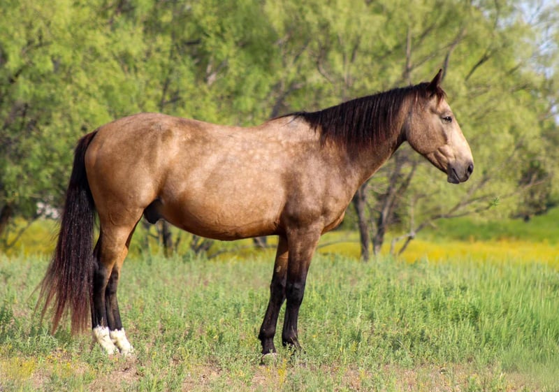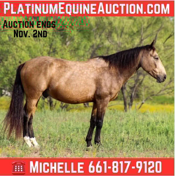 ONLINE AUCTION Place your bids at www.PlatinumEquineAuction.com Starting Bid $3500 Auction ends November 2nd, 2025 Need a new saddle? Check out White Rock Saddles on our website or Facebook Here’s your chance to own a living piece of the American West! Deputy is a 2016 model Great American Mustang—the classic buckskin everyone loves, standing a solid 15 hands tall and built like the mountains he’s explored. With big bone, strong feet, and the trademark heart of a Mustang, he’s the kind of partner you can count on for years to come. Captured as a weanling from the Triple B HMA in Nevada, Deputy didn’t spend long on the open range, but he’s spent his life proving the Mustang spirit runs deep. He’s been the ultimate trail blazer, riding all over the Ozark Mountains—through timber, across creeks, over bridges, and up and down rocky slopes. Point him anywhere, and he’ll go with confidence and heart. Deputy has a smooth, easy lope you’ll want to ride all day, and he’ll even lope off from a standstill. He’s quiet and steady in town, unfazed by traffic or commotion, and while he’s not a full-time ranch hand, he’s happy to help move cattle when needed. This handsome gelding has seen obstacle courses, taken everything in stride, and carries himself with a kind, willing attitude. He’s gentle, sweet-natured, and the perfect “more whoa than go” type for riders who want to relax and enjoy the ride. Whether stalled or turned out, he’s easy to get along with and always a gentleman. If you’re looking for a trustworthy mount with heart, beauty, and history—Deputy is the real deal. We are open to anyone interested in him to schedule a time to come see him or if you can’t make it schedule a FaceTime showing to see him. If you need help with transport don’t hesitate to ask we have a list of reputable haulers that can get him safely to your doorstep WORLD WIDE including, Alaska , Mexico, Hawaii, Canada and anywhere in between from Stephenville, TX. For more info contact Michelle with M $ Performance Horses at 661-817-9120. ONLINE AUCTION Place your bids at www.PlatinumEquineAuction.com Starting Bid $3500 Auction ends November 2nd, 2025 Need a new saddle? Check out White Rock Saddles on our website or Facebook