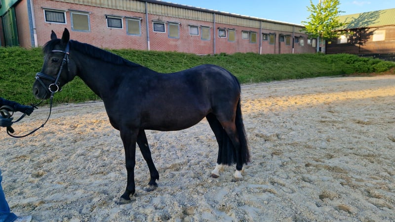 Zum Verkauf steht eine hübsche New Forest Pony Stute, 11 Jahre alt und ca. 1,40 m groß. Die Rappstute überzeugt nicht nur durch ihr ansprechendes Erscheinungsbild, sondern auch durch ihre solide Grundausbildung. Sie ist dressurmäßig auf E-Niveau ausgebildet und zeigt bereits Ansätze in Richtung A. Dabei präsentiert sie sich lernwillig, motiviert und mit viel Freude an der Arbeit. Aufgrund ihres Temperaments und ihrer Arbeitsbereitschaft ist sie kein reines Anfängerpony – sie sucht eine Reiterin oder einen Reiter, der ihr eine klare Aufgabe gibt und sie weiter fördert. Die Stute wird schweren Herzens aus Zeitmangel verkauft und wünscht sich ein neues Zuhause, in dem sie regelmäßig gearbeitet und gefördert wird. Bei Interesse freuen wir uns über eine Nachricht und stellen gerne weitere Informationen zur Verfügung.
