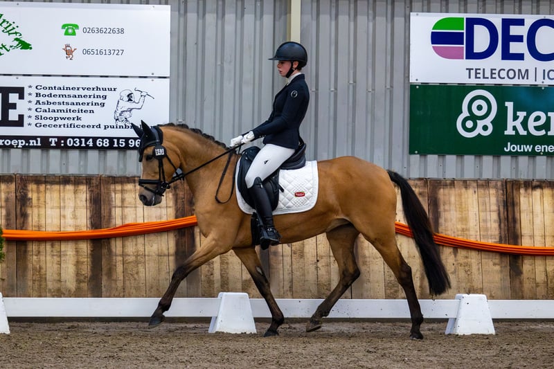 ⭐️⭐️⭐️⭐️⭐️ Suche kleines Pferd im Zusammenhang mit dem Übergang zu den Pferden Jamies Lovely Jayda (nach Orchids Cestanni) ist eine 12-jährige Falb-Merrie mit einer Größe von 1,48 m. Jayda ist in der Dressur bis Klasse Z2 erfolgreich und hat in der Vergangenheit bis 0,90 m Springen gezeigt. Jayda ist brav und eignet sich hervorragend als Lernpony. Deshalb suchen wir für Jayda einen ehrgeizigen Reiter, der sie sportlich weiter fördern möchte. Sie hat keine Mängel und ist beim Schmied, im Umgang sowie auf dem Anhänger stets brav. Beim Springen kann Jayda manchmal Spannung aufbauen, weshalb sie im letzten Jahr nur in der Dressur geritten wurde. Vor vier Jahren hat Jayda ein Fohlen bekommen, das sich noch in unserem Besitz befindet. Für Videos und/oder weitere Informationen bitte per WhatsApp an 06-25223328 schreiben. Händler brauchen nicht zu antworten.