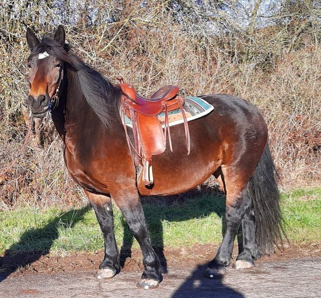 Mijn expressieve, altijd gemotiveerde en zeer leergierige Noriker-merrie Ronja zoekt haar passende persoon. Ronja is op 6 maanden bij ons gekomen en woont in een groepsstalling met andere paarden. Ze draagt Duplo-schoenen, wordt regelmatig ontwormd en gevaccineerd. Op 3-jarige leeftijd is ze aangezadeld en is ze een oplettend, prestatiegericht en vrij onbevreesd rijpaard. Ze is zeer gevoelig in omgang en heeft krachtige gangen. Ronja is geen beginnerspaard en heeft een zelfverzekerde ruiter/ruiteres nodig met duidelijke communicatie. Ze houdt van haar vertrouwde omgeving en is niet geschikt voor wedstrijden of frequente verhuizingen. Ronja heeft regelmatige arbeid en beweging nodig, iets wat ik haar helaas niet meer kan bieden. Ze werkt graag op de longe en in het terrein, alleen of met meerdere paarden. Ook graag contact via WhatsApp en vanaf de vroege avond.