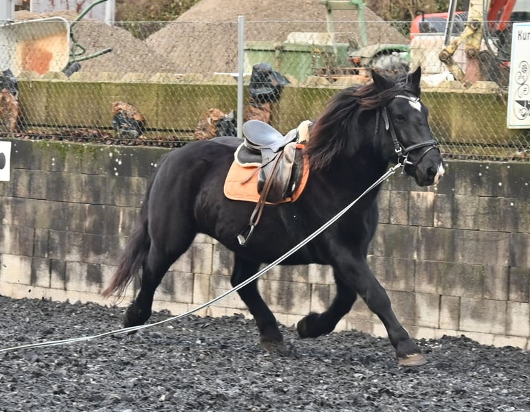 Miriam is a 156cm tall, friendly and well-behaved Noriker black mare. Her temperament is balanced and she is free of naughtiness. She was born on 04.03.2013 and has been ridden and driven in two harnesses. Miriam is registered in the studbook as a stallion dam with 7.64 points and has had several foals. Meli, her foal from 2023, can be viewed at our yard. Miriam knows the stalls as well as the open stable. She is used to children, dogs, cats and farm machinery. She is well-behaved at the farrier, she is barehoof and she gets into the horse trailer without hesitation. Miriam is regularly wormed and tested PSSM1 free. Her sire is the 1b stallion Schneider Vulkan. MV: Pongau Elmar XIV