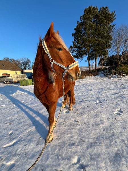 Verkaufe aufgrund von Bestandsverkleinerung: Fast 3 Jährige Norikerstute Steffi Sie hat einen äusserst ruhigen Charakter und ist stets eine coole Socke! Sie kennt Hufschmied und Tierarzt wobei sie auch diese mir gelassenheit meistert! Hänger fahren ist kein Problem Ausbildungsstand dem Alter entsprechend Ich kann sie mir gut als künftiges freizeitpferd für lange gemütliche Ausritte oder als Kutschpferd vorstellen Jedoch hat sie sicherlich auch potenzial für die Dressurarbeit! Sie verbrachte 2 Sommer lang auf der Alm Kennt Boxen und Offenstallhaltung Steffi kann bei mir am Stall eingestellt bleiben falls dies erwünscht ist. Vater: Amigo Nero XII, Mutter: Schliff-Sissi, Muttervater: Ginzberg Diamant XIV. Willst du Steffi kennenlernen ? Gerne melden! 06766412540