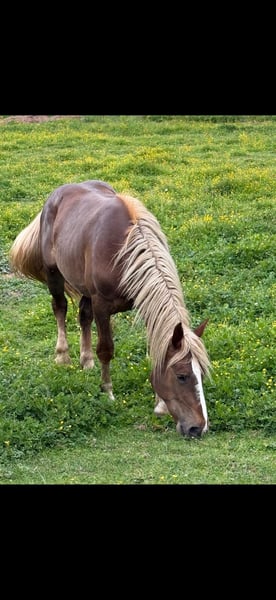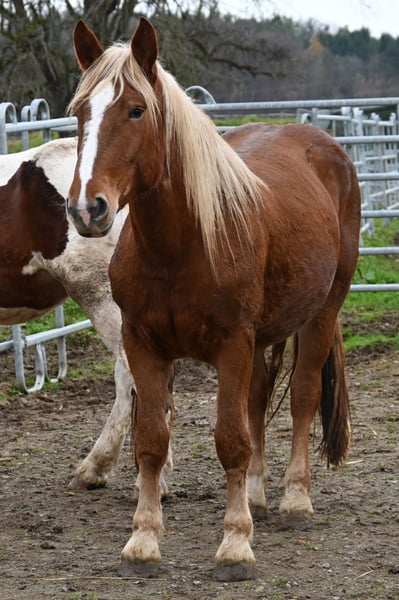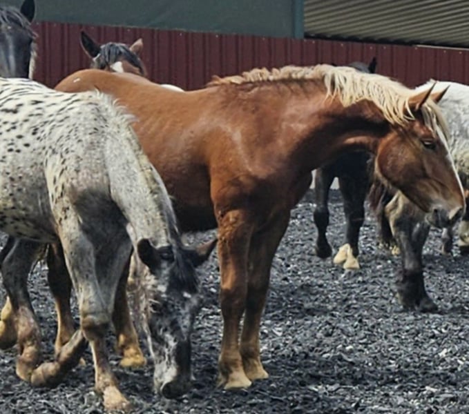This beautiful, majestic dark-fawn Noriker mare is looking for her person. Larissa was born on February 5th, 2023, and will be three years old. She is expected to reach approximately 16.1 to 16.3 hh. Larissa is confident, friendly, and well-versed in the basics of young horse training. She enjoys grooming and remains calm and relaxed during the process. Like all my horses, Larissa is familiar with children, cats, cattle, alpacas, farm machinery, cars, and dogs. She spent her first summer on the alpine pasture with her mother and lives here in a species-appropriate group environment, having been outside during the summers. Larissa has a very beautiful, expressive trot with good ground coverage. She is regularly dewormed, chipped, and registered. Larissa has a full pedigree and is of great interest for breeding programs. Sire: Balisto Nero Dam: Engelbert Vulkan