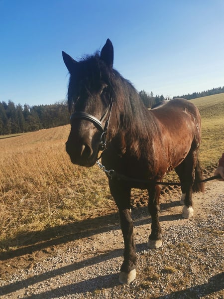 I am selling my beloved Noriker gelding due to lack of time. Wasti has been gently ridden since last spring. He is familiar with lunging, ground work, and also enjoys walks in the forest. We have also managed a few trail rides at a walk, sometimes in company with another horse. Wasti is being sold with a summer saddle, which was adjusted again this year.